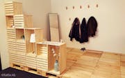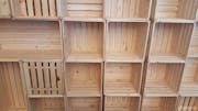 Nachdem wir alle Tische, Stühle und Computer vom alten Büro am neuen Arbeitsplatz aufgestellt hatten, wollten wir wieder wie gewohnt mit der Arbeit weitermachen. Doch ziemlich schnell fiel uns ein grosser Störfaktor auf: es hallte so stark im grossen, (fast leeren) Büro, dass uns unsere Kunden am Telefon kaum verstehen konnten. Also organisierten wir unser erstes Büro-Einrichtungs-Meeting und studierten, wie wir unser Büro mit wenig Budget schön und vor allem zweckentsprechend einrichten könnten. Uns war schnell klar, dass wir uns an einem Motto oder an einer Stilrichtung orientieren müssen. Daraufhin haben wir uns gefragt, wieso wir unser Büro nicht wie eine Wohnung einrichten sollen? Da wir täglich mit Wohnungen zu tun haben, empfanden wir die Idee als sehr passend. Also fingen wir an online nach Stilrichtungen zu suchen, die zu flatfox passen würden. Silvan’s Vorschlag mit Holzkisten zu arbeiten begeisterte das ganze Team. So standen wir in unserem noch kahlen Büro, diskutierten und rechnet alle gemeinsam, wie viele Kisten wir wohl brauchen würden, um Regale und die Garderobe aufzustellen. Es waren über einige Wochen mehrere Bestellungen nötig, sodass wir schlussendlich über 100 Kisten in unserem Büro stehen haben.