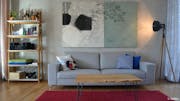 Kalt-weisses Licht wird für Arbeitsflächen oder -räume eingesetzt, warm-weisses für die wohnlichen Bereiche. In der Schweiz ist es leider in älteren Gebäuden noch immer so, dass pro Raum in der Mitte der Decke ein Anschluss für eine Leuchte vorhanden ist. Eine Leuchte in die Mitte des Raumes zu hängen wirkt langweilig, uninspiriert und bietet meist nicht das Licht, das es braucht, um sich wohlzufühlen. Dem kann schnell Abhilfe geschaffen werden. Zum Beispiel mit einem kleinen Haken an der Decke, womit das Kabel und die Leuchte an einen anderen Ort gezogen werden können, sei es über den Ess- oder den Couchtisch oder einfach in eine Ecke des Raumes anstelle einer Stehleuchte. Eine Hängeleuchte sollte immer eine Beziehung haben zu einem Möbelstück. Entscheidet ihr euch gegen eine Hängeleuchte, deckt das Loch in der Mitte der Decke ab und arbeitet nur mit Steh-, Wand- oder Tischleuchten.