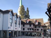 Das Zentrum Horgens zeichnet sich vor allem durch die vielen Riegelbauten und die kleinen, mit Pflastersteinen versehenen Gassen aus.