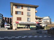 Auf dem Dorfplatz befinden sich diverse Einkaufsmöglichkeiten wie Coop, Migros, Denner, Apotheke und die Bank.