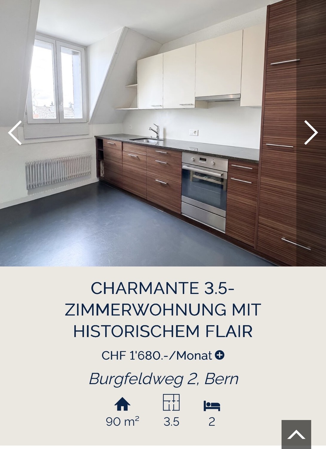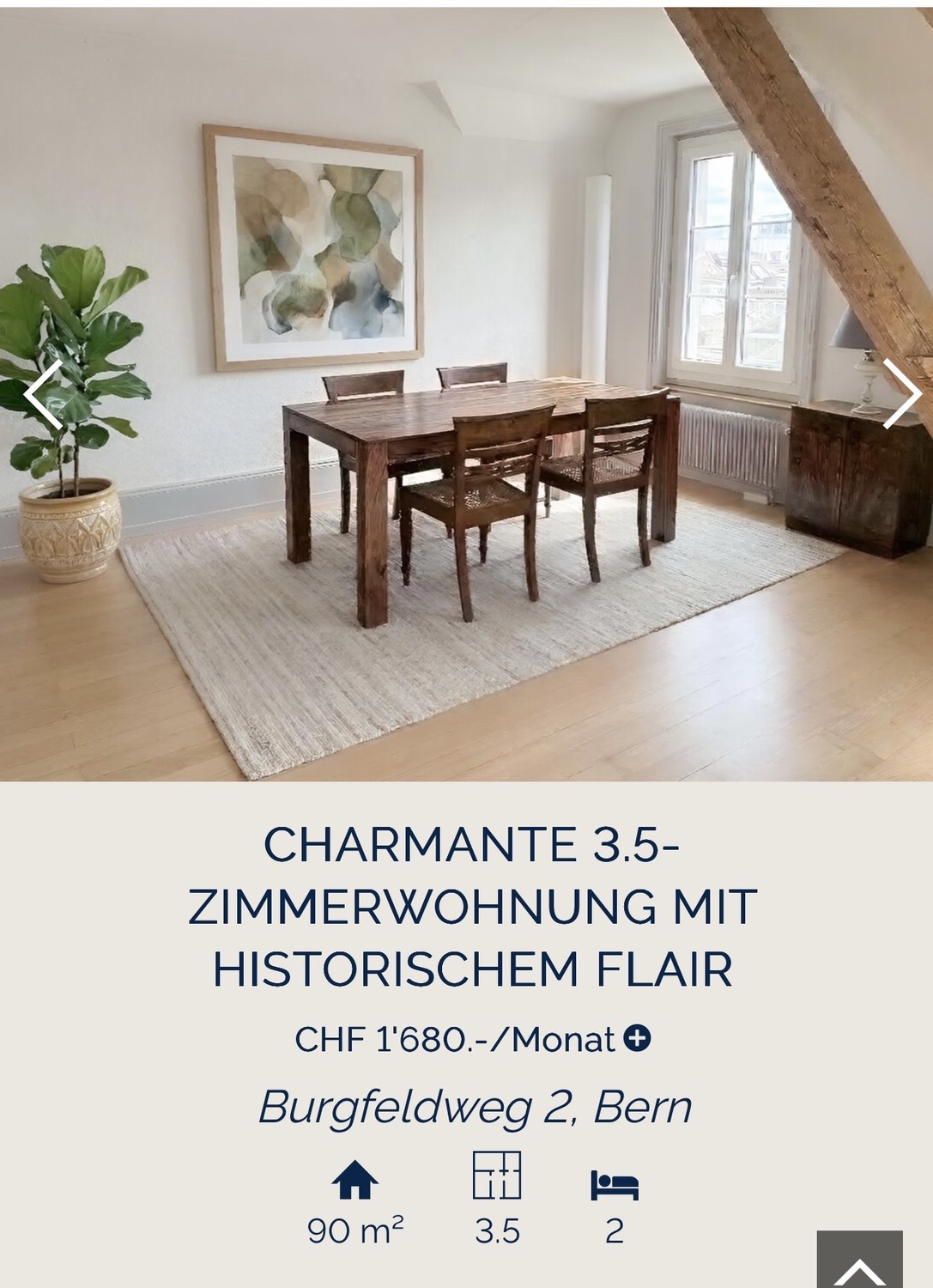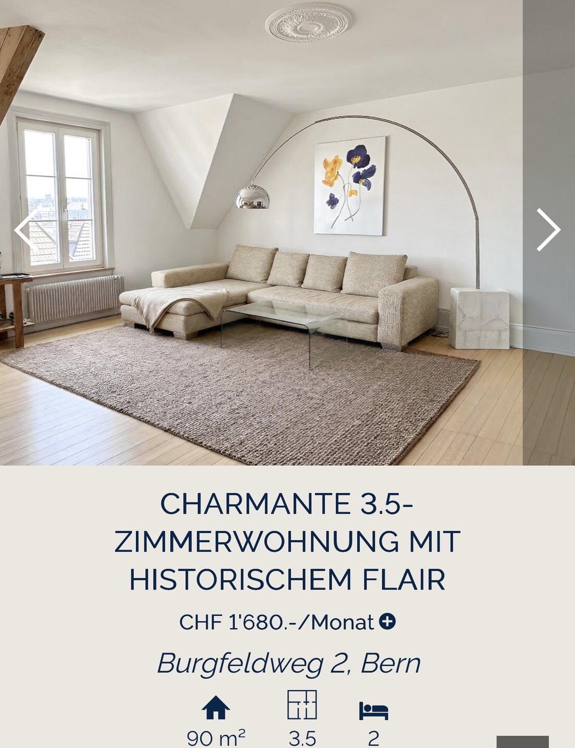 Diese grosszügige 3.5-Zimmer-Dachgeschosswohnung aus der Jahrhundertwende (ca. 1900) befindet sich im begehrten Burgfeldquartier und vereint historischen Charakter mit zeitgemässem Wohnkomfort. Die Liegenschaft wurde mit viel Liebe zum Detail renoviert, wobei der ursprüngliche Charme des Hauses bewahrt und harmonisch mit modernen Elementen ergänzt wurde.