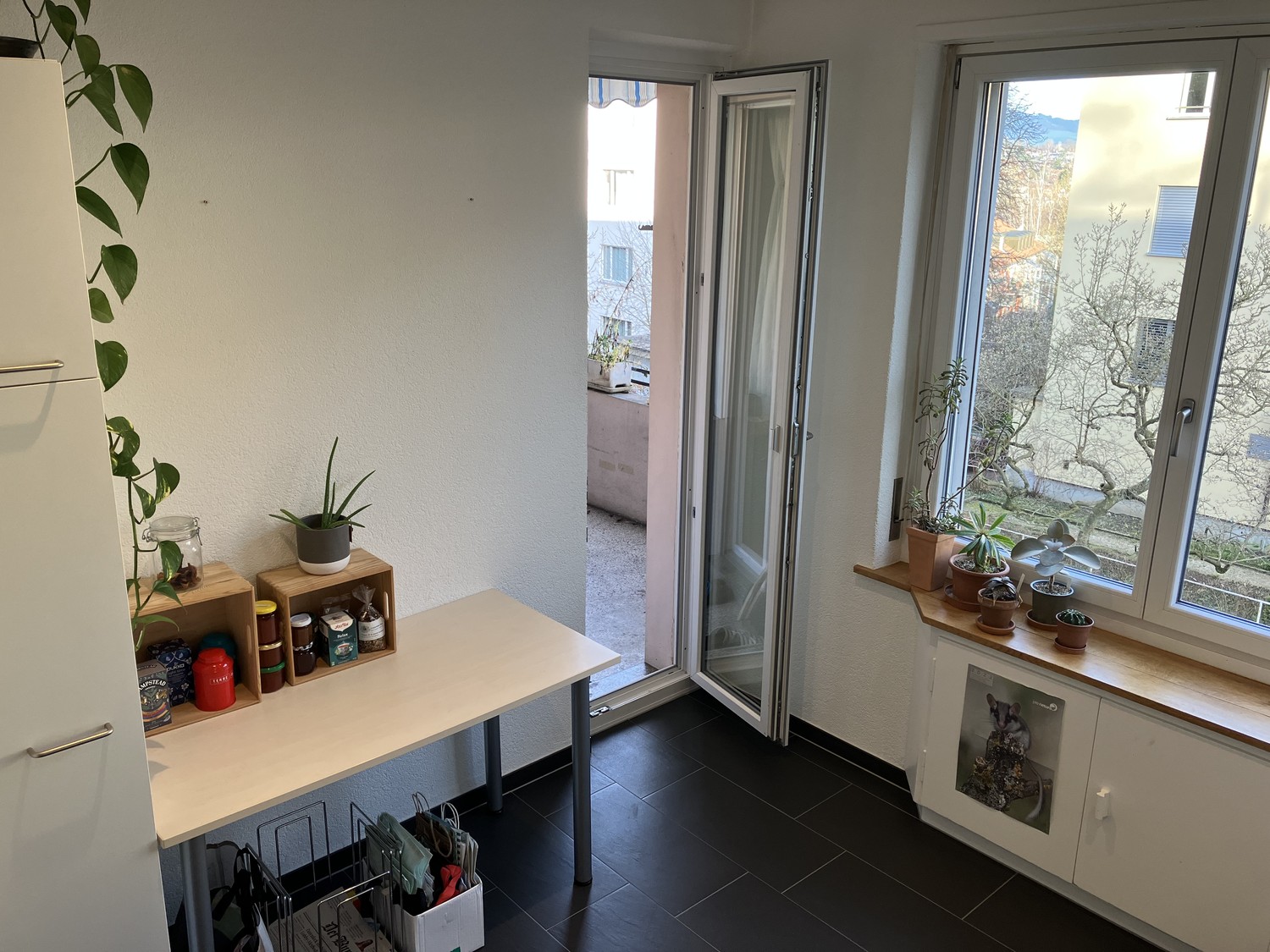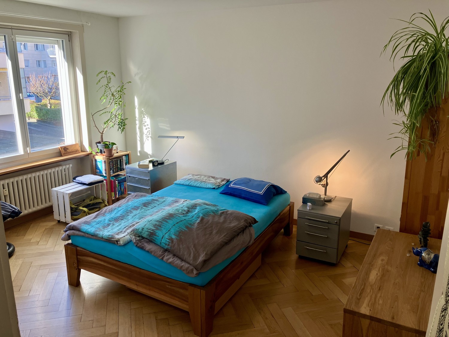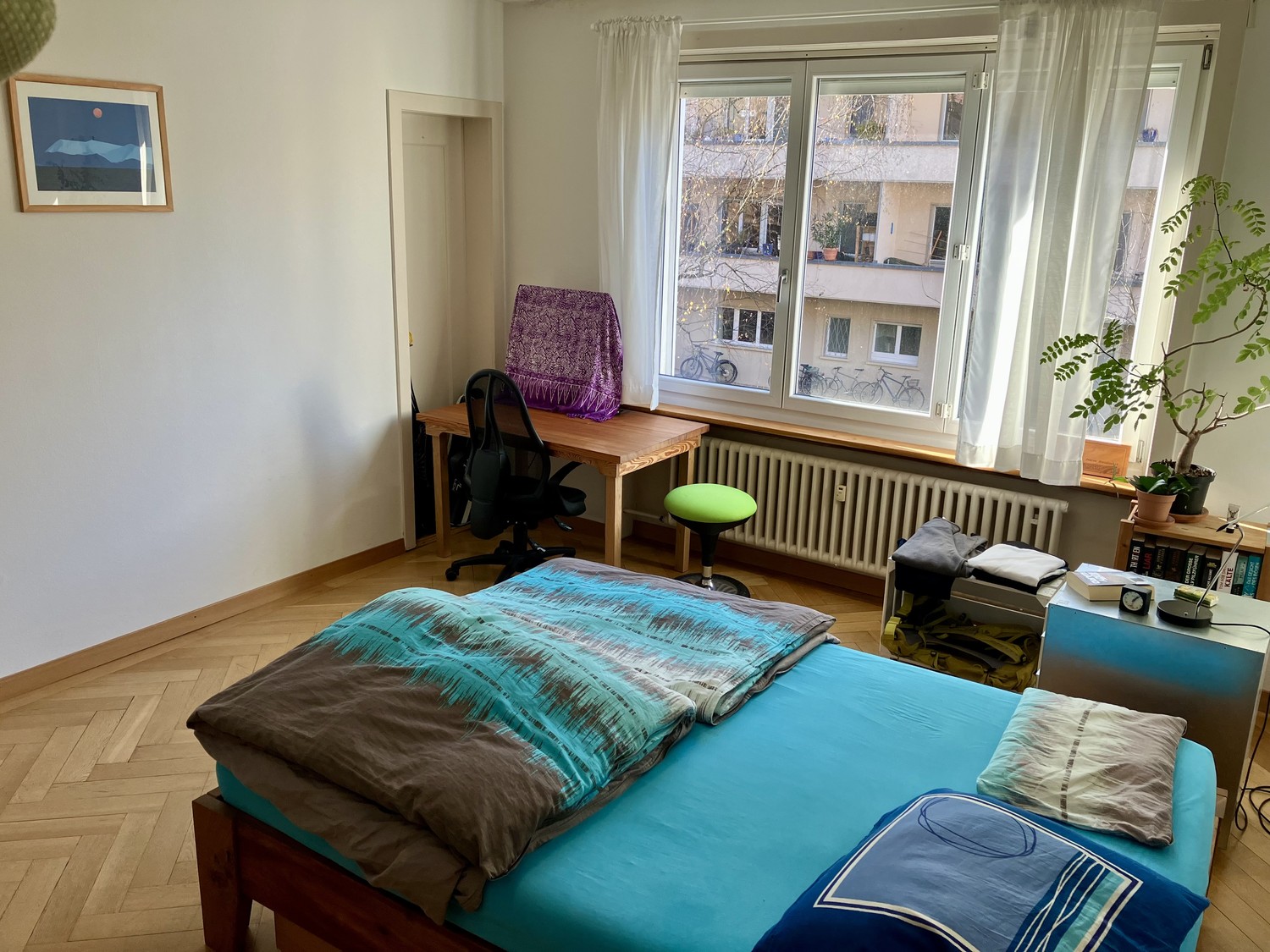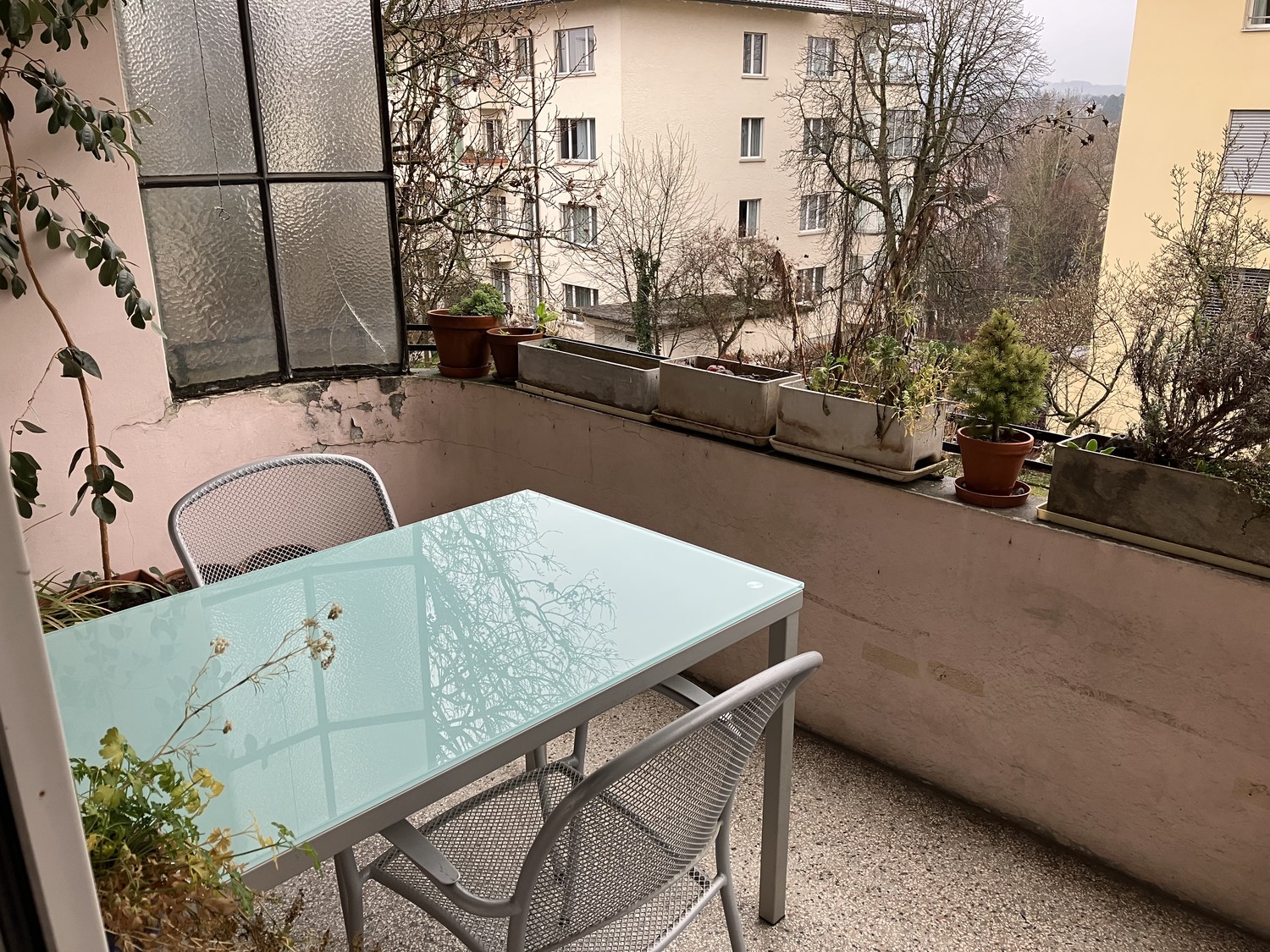 Einbauschränke, Zimmer mit Parkettboden. Eigener Balkon mit Morgensonne und Gartensitzplatz zur Mitbenutzung. Waschmaschine & Wäschetrockner/Tumbler (zur Mitbenützung)