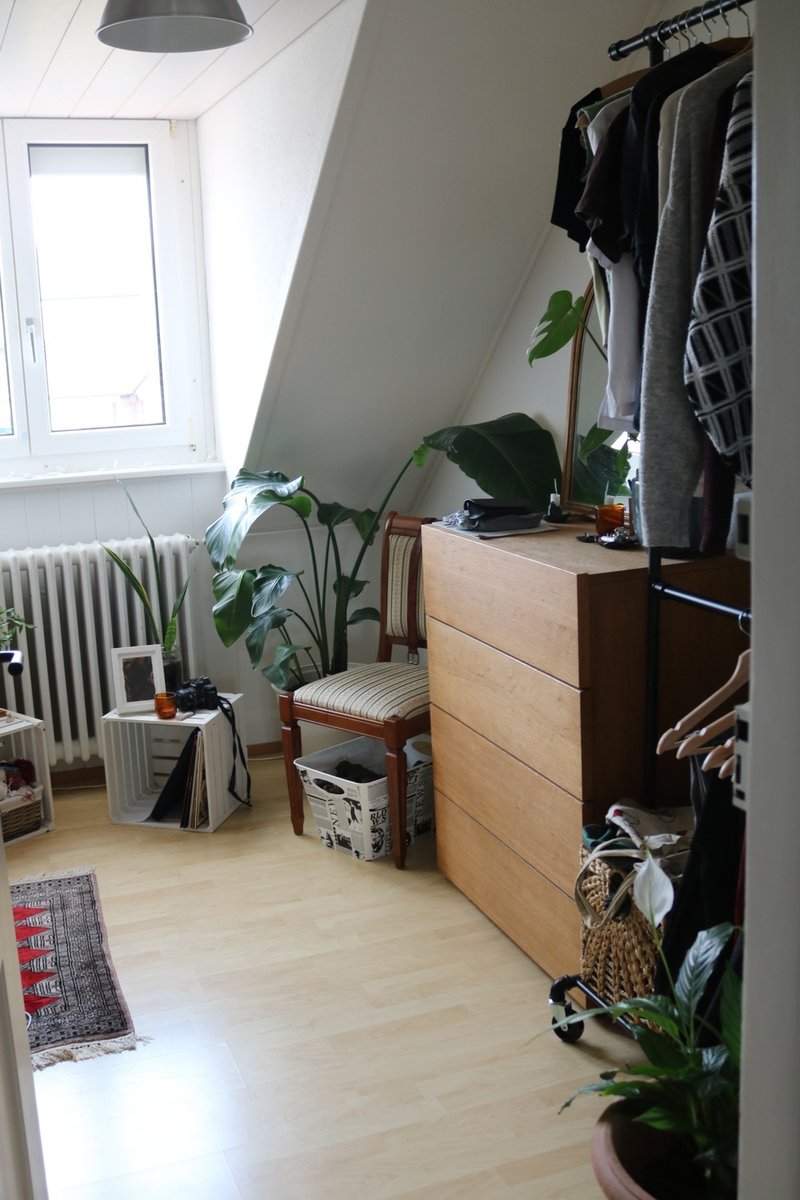Die Wohnung ist gut gelegen, ruhig und hat Altbau-Charme. Sie ist im obersten Stock, dadurch als Dachwohnung auch im Winter sehr sonnig, besonders die zwei grösseren Zimmer auf Süd-West-Seite. Die Fenster bieten Ausblick über die Dachlandschaft der Länggasse. Das grosszügige Entrée ist das Herzstück der Wohnung und es gibt einen praktisch nutzbaren Garderobenbereich im Treppenhaus. Estrich und Reduits bieten viel Stauraum.