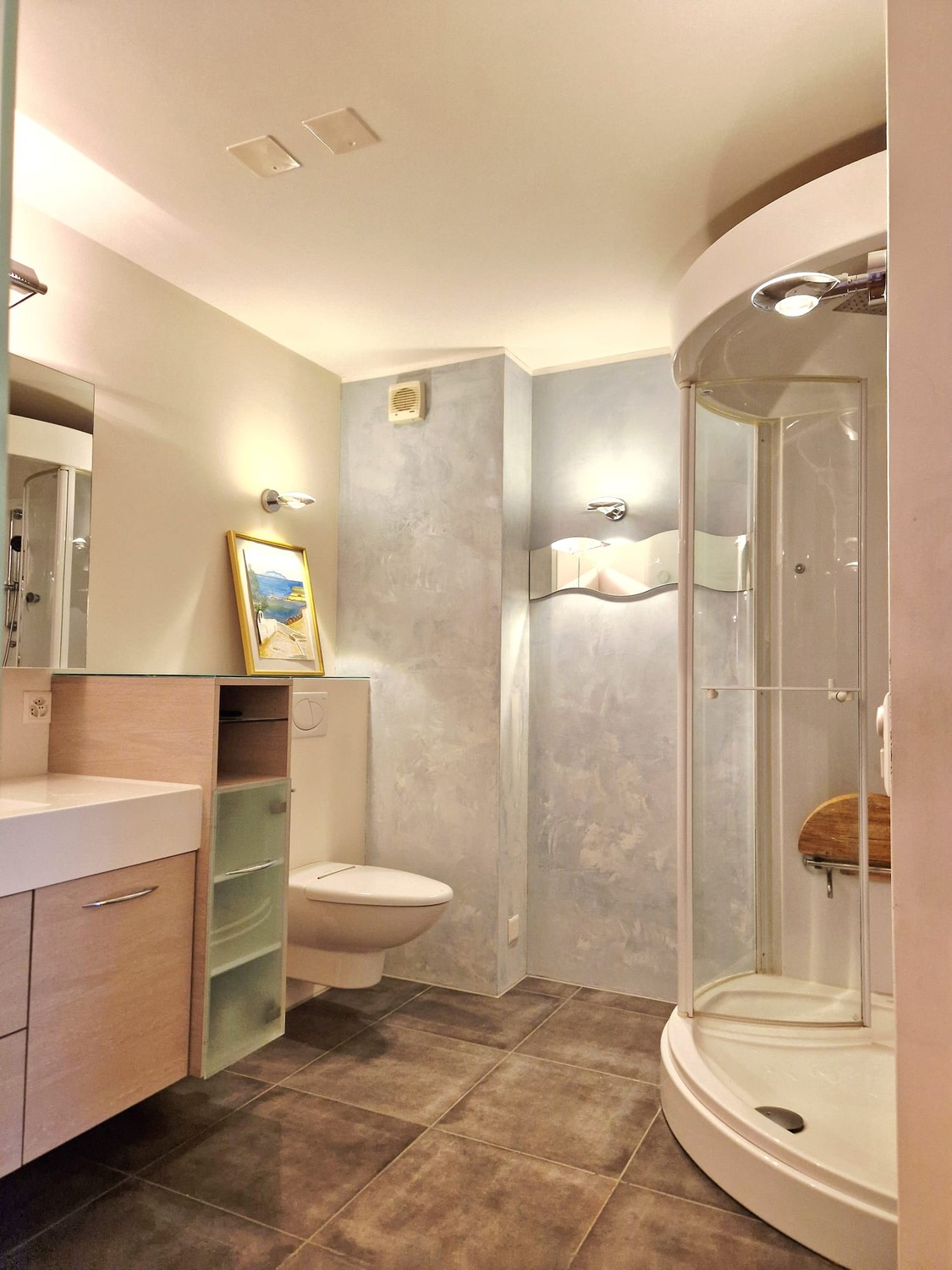 Dampfdusche, moderne Küche, Waschmaschine und Tumbler in der Wohnung, helles, freundliches Wohnambiente. Grosser Balkon auf der Westseite und 2 kleinere auf der Ostseite der Wohnung