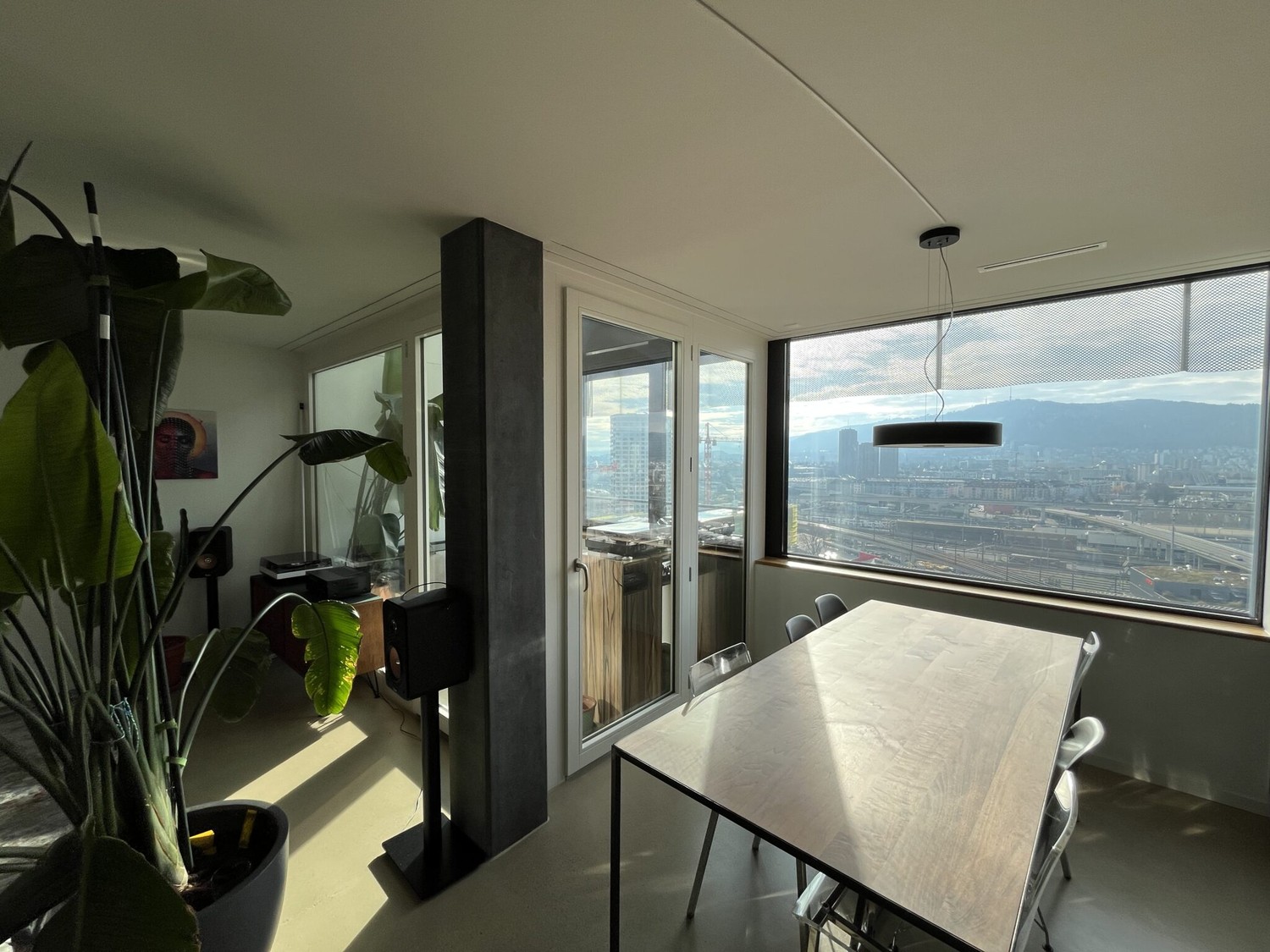 Wir untervermieten eine hochwertige, vollmöblierte Stadtwohnung in einem modernen Hochhaus mit atemberaubender Aussicht über Zürich und die Alpen. Die Wohnung zeichnet sich durch ihr modernes Design, eine grosszügige Raumaufteilung auf zwei Etagen (Maisonette) sowie ein stimmiges Lichtkonzept aus.