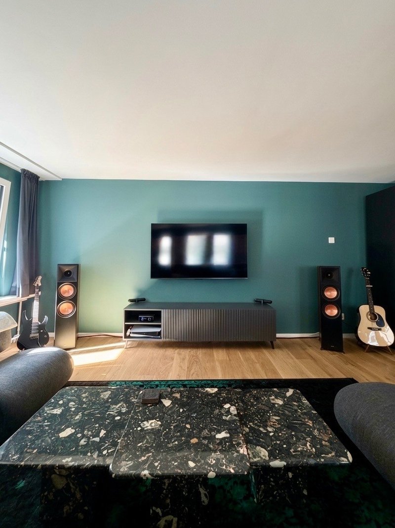 • Technik: Klipsch Reference HiFi Stereo-Anlage mit Rega Plattenspieler, PS5, Apple TV und Siri-sprachgesteuerte Hue-Beleuchtung.