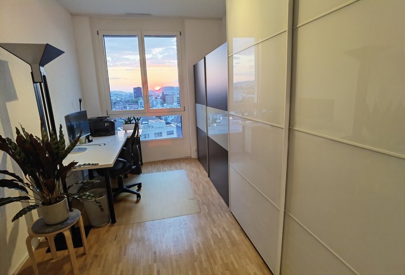 Besonders hervorzuheben ist die praktische Lage der Wohnung. Innert 10 Minuten zu Fuss erreichen Sie den Bahnhof, Tram, Bus, Post, mehrere Supermärkte, Restaurants, Takeaways, Letzipark Shopping Mall, Gym, Park usw.
