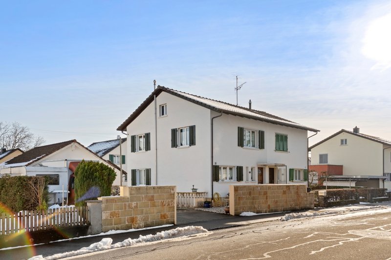 Das charmante Einfamilienhaus mit seiner grosszügigen Garage fügt sich harmonisch in die Nachbarschaft ein. Die ruhige Lage garantiert erholsame Nächte, während die gute Infrastruktur alle Annehmlichkeiten des täglichen Lebens in Reichweite bringt.