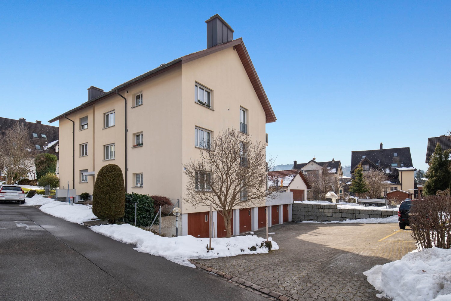 Parkierung: Zur Liegenschaft gehört eine private Garagen-Einzelbox, die für CHF 25'000.- zusätzlich erworben werden muss.