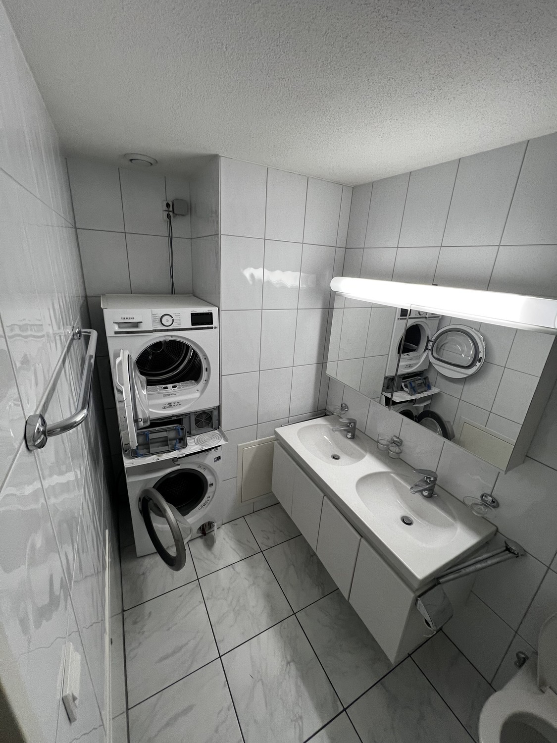 Bad mit WC,Badewanne, Doppelwaschbecken, Waschmaschine & Tumbler