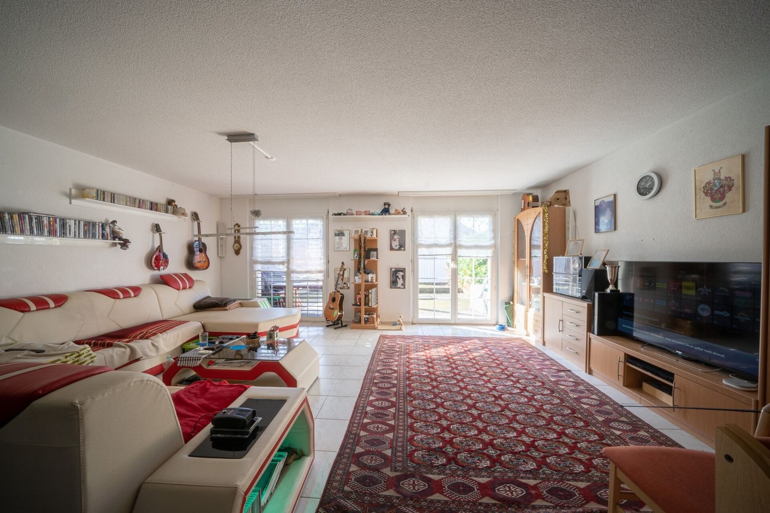 Beim Betreten des Hauses empfängt Sie ein freundlicher Eingangsbereich mit genügend Stauraum, ideal für Ihre Garderobe. Von hier aus gelangen Sie entweder zum Gäste-WC oder direkt in das grosszügige Wohnzimmer, das durch seine Helligkeit dank der grossen Terrassenfenster eine einladende Atmosphäre und direkten Zugang in das Freie bietet.