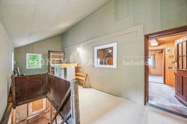 Im Erdgeschoss befinden sich eine funktionale Küche sowie ein Wohn- und Essbereich mit gemütlichem Kachelofen. Ergänzt wird diese Etage durch ein Badezimmer mit Badewanne, ein Zimmer sowie mehrere praktische Lager- und Abstellräume. Im Obergeschoss stehen drei weitere Zimmer zur Verfügung, die sich flexibel als Schlafzimmer, Büro oder Gästezimmer nutzen lassen. Abgerundet wird das Geschoss durch ein weiteres Badezimmer mit Dusche. Ein grosszügiger Dachboden bietet zusätzliches Ausbaupotenzial - ideal für ein Atelier.