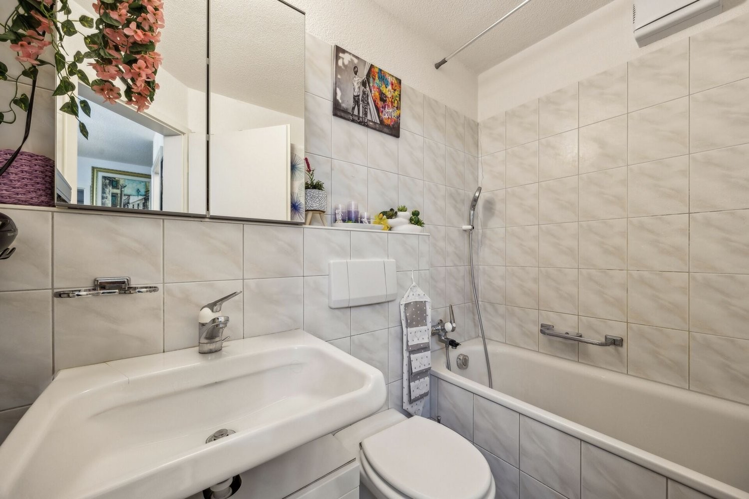 Die zwei Badezimmer - eines mit Dusche, das andere mit Badewanne - sind funktional ausgestattet und praktisch gestaltet. Pflegeleichte Materialien, gut platzierte Sanitärelemente und eine klare Raumaufteilung sorgen für Alltagstauglichkeit und Komfort.