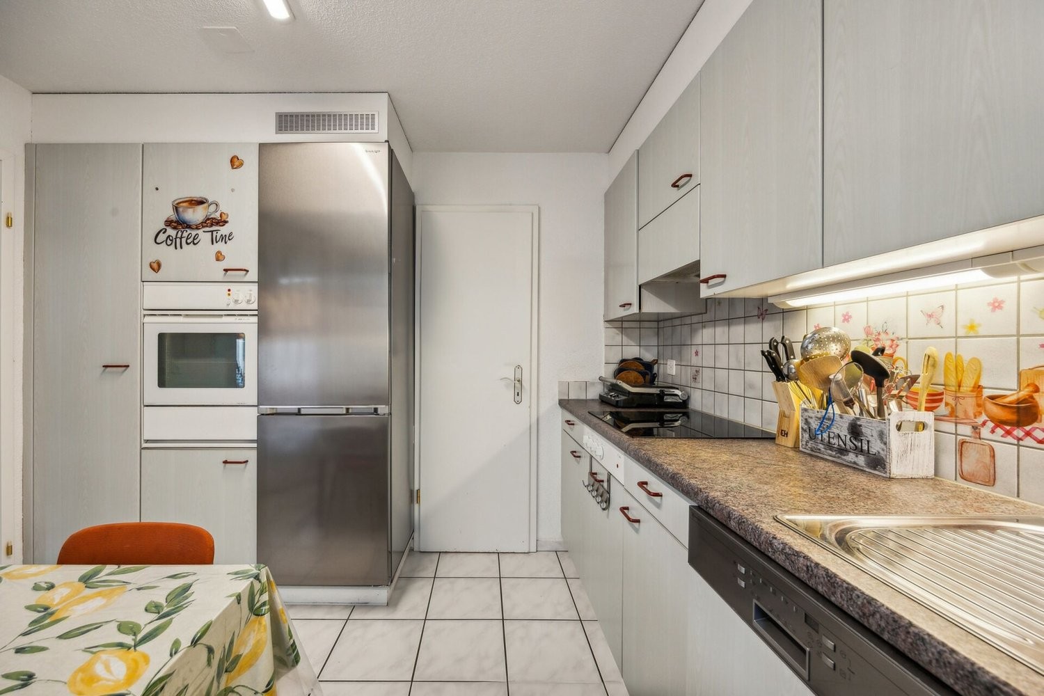 Die Küche ist räumlich abgetrennt, wodurch eine angenehme Trennung zwischen Kochen und Wohnen entsteht. Sie überzeugt durch eine durchdachte Raumgestaltung mit viel Arbeitsfläche, clever platzierten Schränken und einer klaren Linienführung. Funktionale Geräte fügen sich harmonisch ein und erleichtern die Abläufe im Alltag. Auch ein kleiner Tisch findet hier problemlos Platz - ideal für ein schnelles Frühstück oder die Zeitung am Morgen.