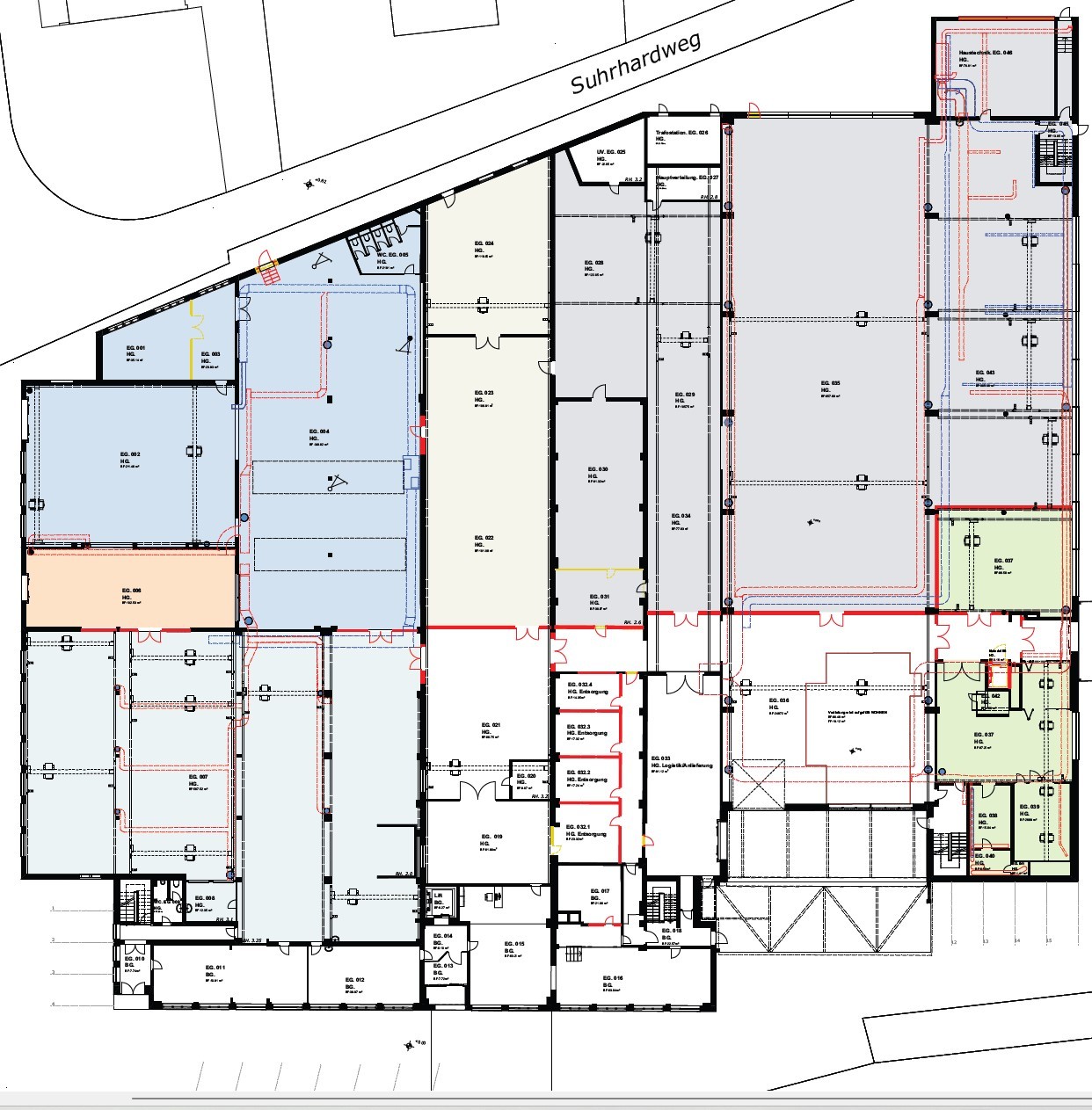 Hallen: ca. 2'500 m² (Teilflächen ab 120 m² gemäss Einfärbungen im Plan anbei).