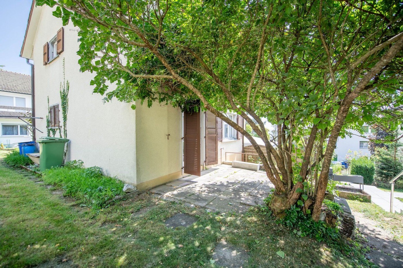 Vom Keller aus gelangt man über die Kellertreppe direkt in den Garten