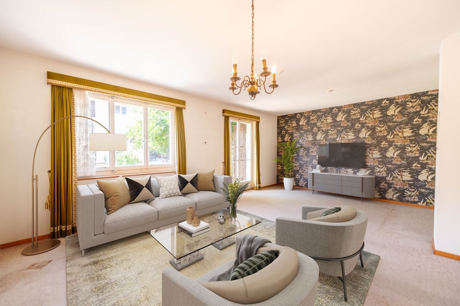 Offener Wohnbereich mit direktem Zugang zur Terrasse und dem Garten