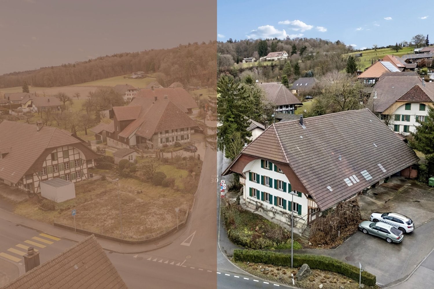 Das ursprünglich um 1850 erbaute Gebäude erstreckt sich über zwei Geschosse und umfasst insgesamt drei separate Einheiten. Dazu gehören eine geräumige 5.5-Zimmer Wohnung, eine 3.5-Zimmer-Wohnung sowie ein Studio. Diese Aufteilung eröffnet flexible Wohnformen und eignet sich sowohl für grössere Familien als auch für die Kombination von Selbstnutzung und Vermietung. Die vorhandenen Raumstrukturen bieten viel Platz und schaffen eine solide Grundlage für eine umfassende Modernisierung nach eigenen Vorstellungen.