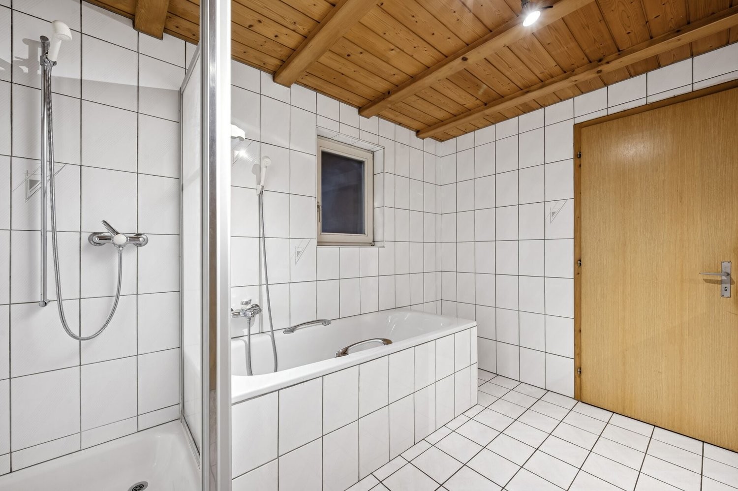 Im Inneren prägen die traditionelle Holzbauweise, unterschiedliche Raumhöhen und die grosszügigen Flächen den Charakter des Hauses. Die verschiedenen Wohnbereiche lassen sich individuell gestalten und gewähren Raum für eine zeitgemässe Neuinterpretation des historischen Gebäudes. Insgesamt stehen fünf Badezimmer zur Verfügung, die auf die unterschiedlichen Einheiten verteilt sind und den Alltag komfortabel organisieren.