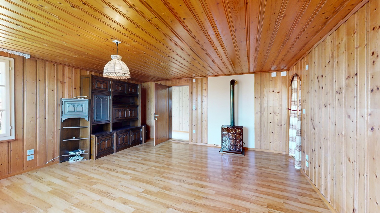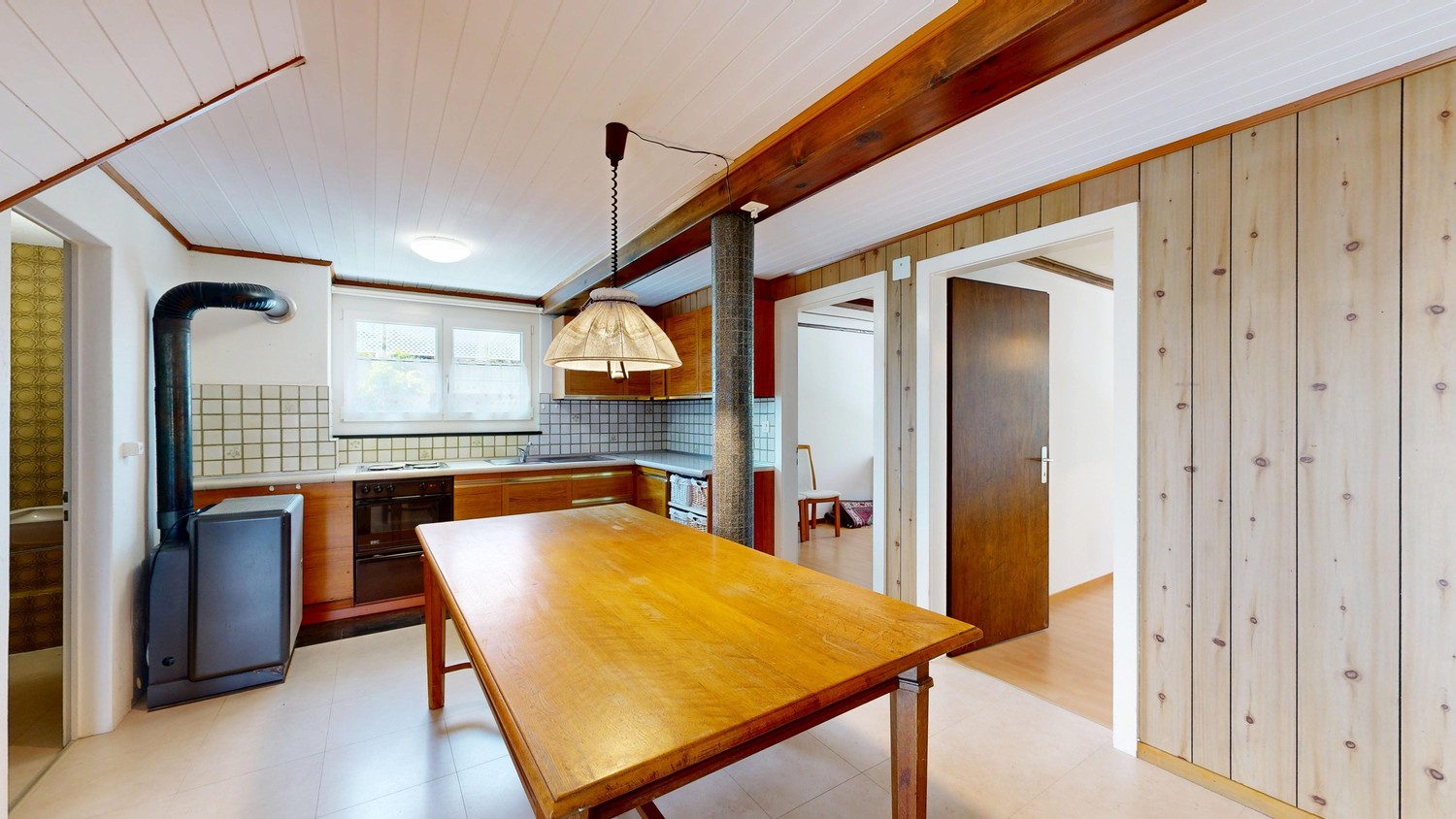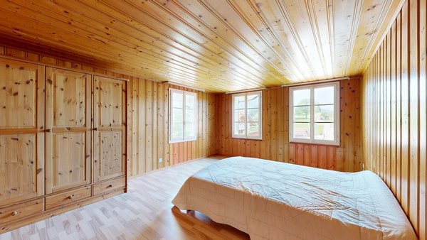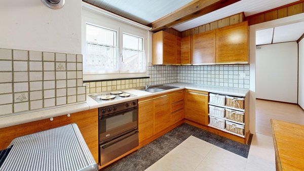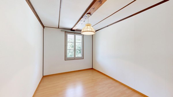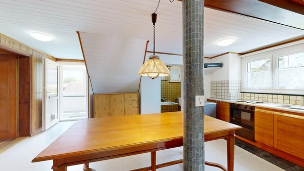 Die weitere 4 ½ Zimmer-Wohnung befindet sich im Obergeschoss. Durch die Veranda gelangen Sie in den Eingangsbereich. Die offene Küche bietet Platz für einen Essbereich. Ausstattung der Küche: Herdplatten, Backofen, separater Kühlschrank, Öl-Etagen-Heizung usw. Das grosszügige, gemütliche Wohnzimmer befindet sich direkt beim Eingangsbereich. Weiter gelangen Sie in das Schlafzimmer 2. Die Schlafzimmer 3 und 4 liegen nebeneinander und sind von der Küche her zugänglich. Das Badezimmer ist mit Badewanne, WC, Lavabo und Fenster ausgestattet.
