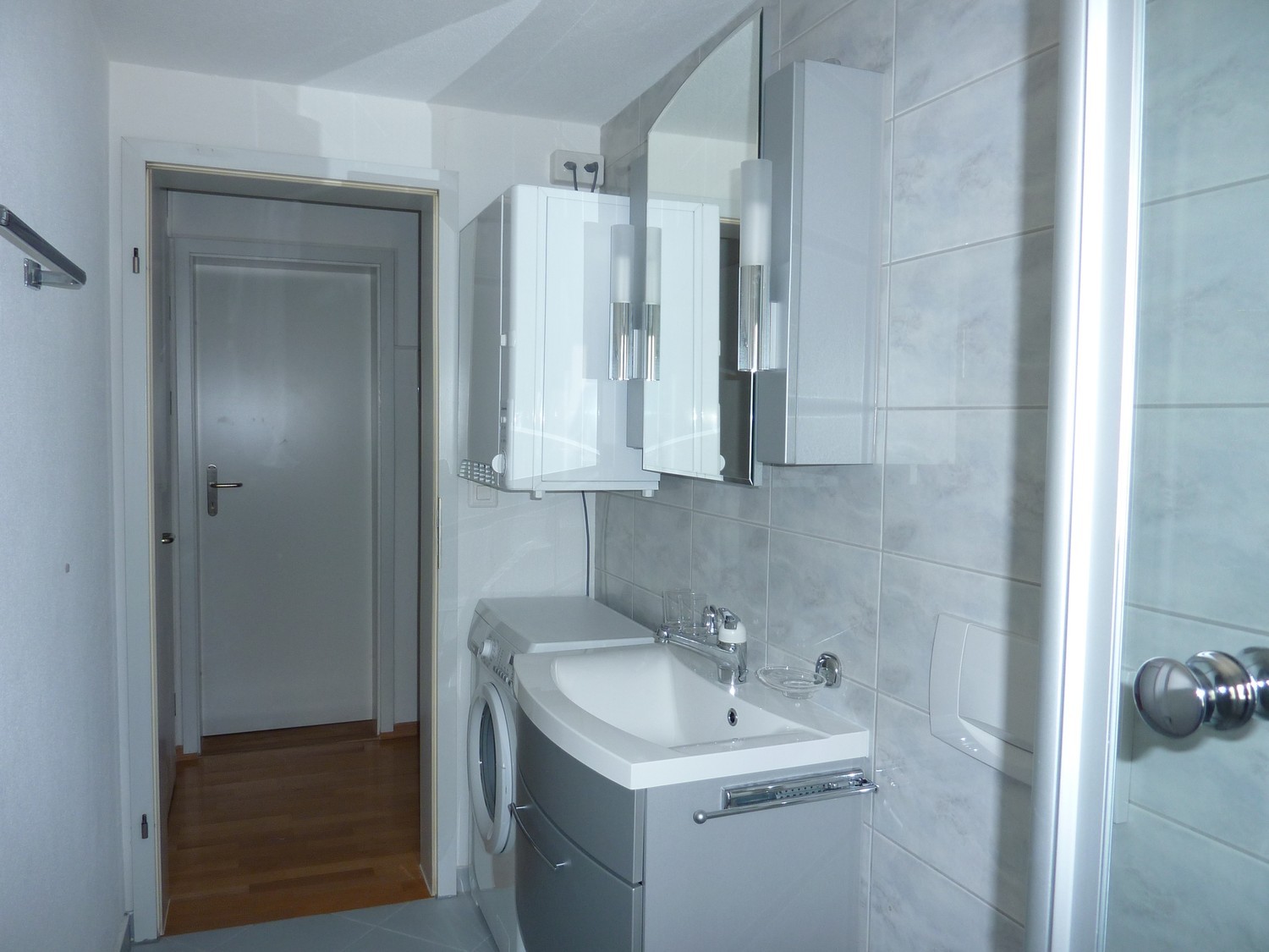 Eigene Waschmaschine und Trockner im Badezimmer.