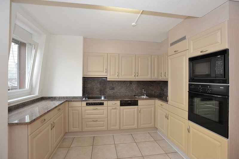 Mikrowelle, Glaskeramik, Umluftbackofen, Abwaschmaschine und grossem Kühlschrank. Schöne Granitabdeckung, viele Arbeitsflächen und Ablagen.