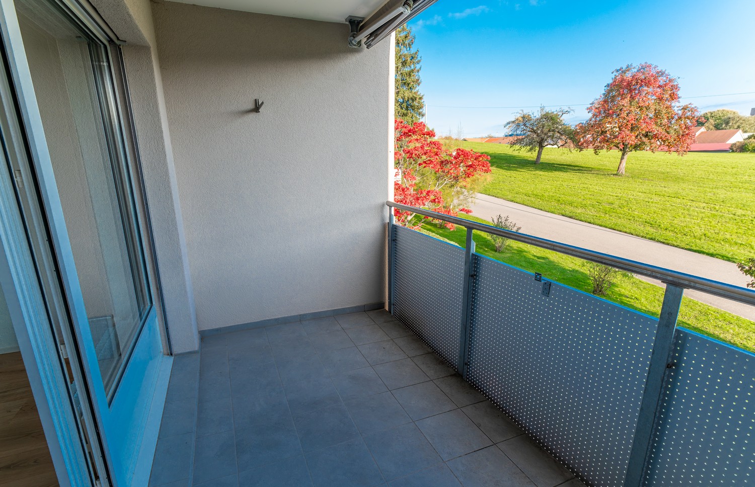 Vom Balkon geniessen Sie eine schöne Sicht auf die Umgebung – ideal zum Entspannen.