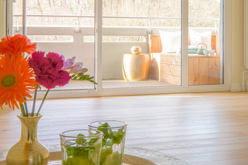 Morgensonne in Küche, Inspirationsraum und Bad, Mittag- und Abendsonne auf dem Balkon sowie im Schlafzimmer.