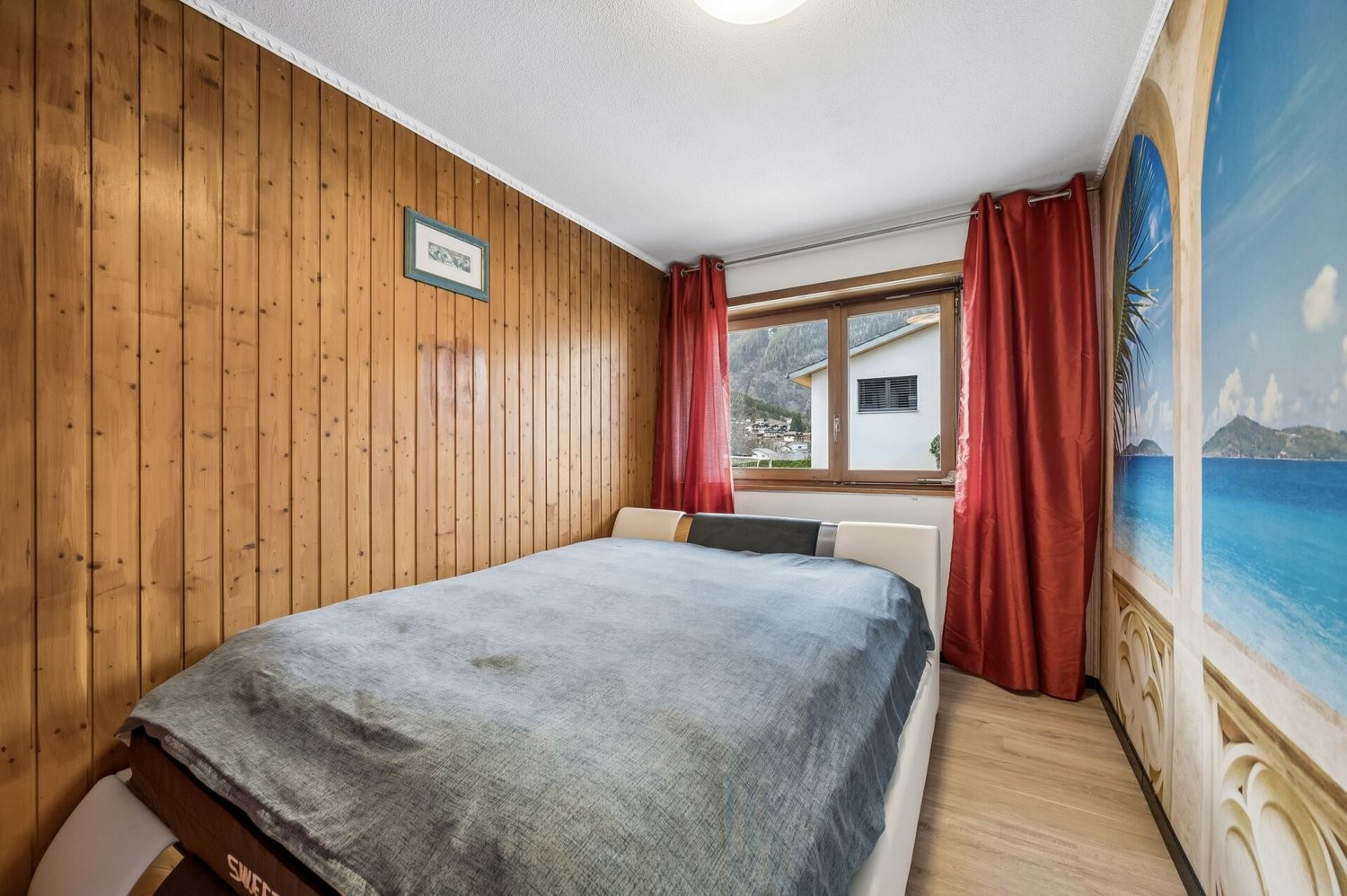Die Wohnung verfügt über mehrere Zimmer, die sich flexibel nutzen lassen. Ob als Schlafzimmer, Büro oder persönlicher Rückzugsort, jeder Raum bietet eine angenehme Lichtstimmung und eröffnet durch die Fenster immer wieder den Blick in die umliegende Berglandschaft. Das Badezimmer ist kompakt und funktional ausgestattet und ergänzt das Raumangebot sinnvoll. Ein zusätzliches Reduit mit Waschmöglichkeit sorgt für praktischen Stauraum im Alltag. Insgesamt zeigt sich die Wohnung in einem intakten Zustand, verfügt jedoch gleichzeitig über Potenzial für eine Auffrischung oder eine individuelle Modernisierung, wodurch sich die Wohnqualität gezielt weiter steigern lässt.