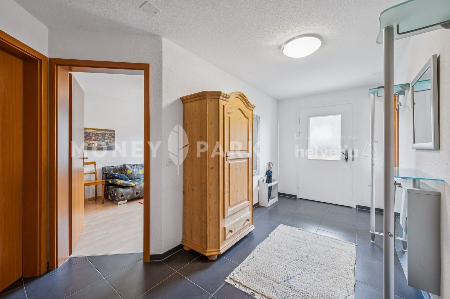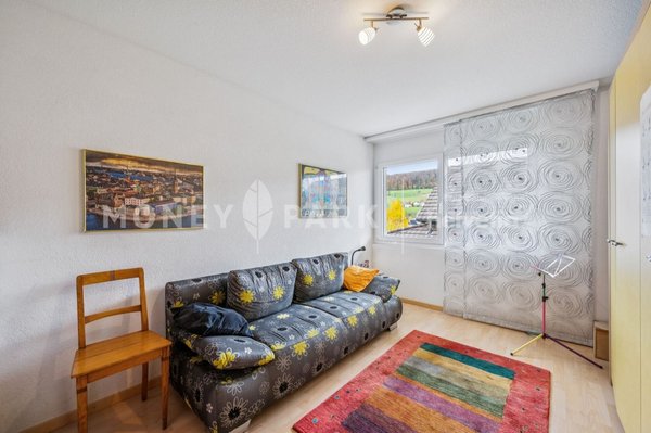 Zurück im Sockelgeschoss mit dem grosszügigen Eingangsbereich steht Ihnen ein weiteres Bad mit Dusche und WC zur Verfügung. Das gegenüberliegende Zimmer eignet sich daher ideal als Gäste-Zimmer, Home-Office oder Musikraum. Eine Waschküche, ein Kellerraum und ein Réduit sorgen für zusätzlichen Komfort.