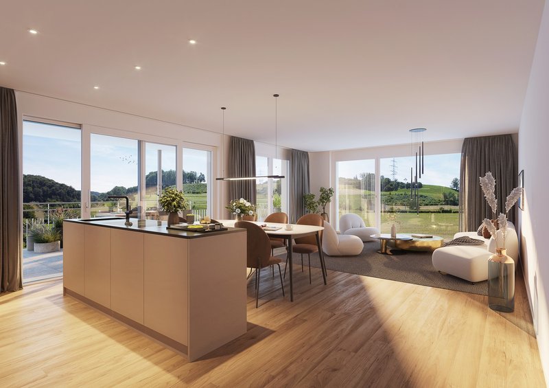 Wohn-/Essbereich: Offenes Konzept mit 48,0 m² – hier trifft man sich zum Znacht oder für einen gemütlichen Schwatz