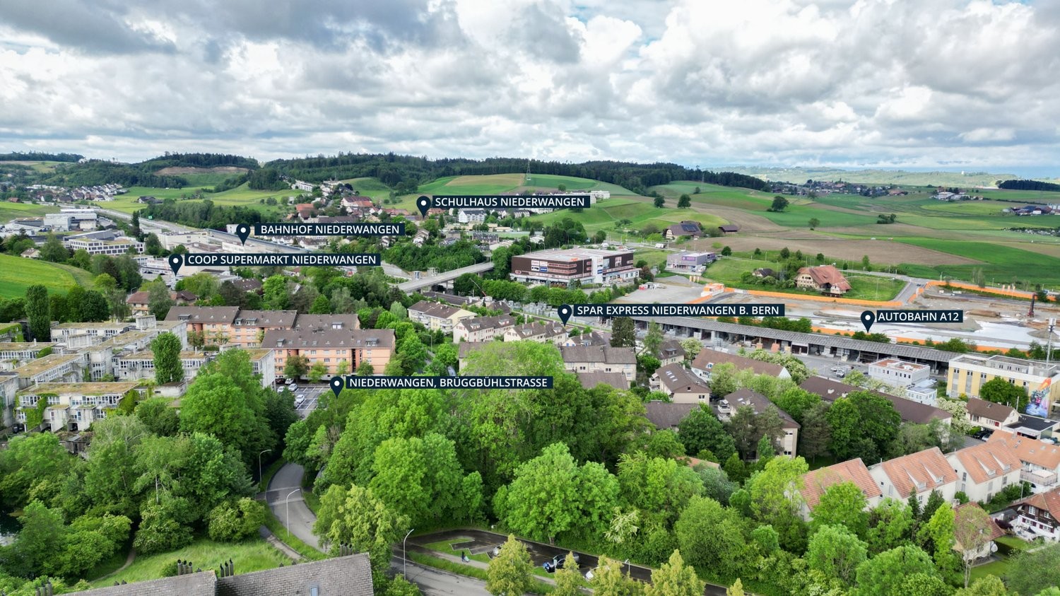 In unter 10 Gehminuten erreichen Sie die nächsten Einkaufs- und Verpflegungsmöglichkeiten. Der Kindergarten, die Primarschule sowie die Oberstufe können in der Gemeinde Niederwangen besucht werden. 200 Meter von Ihrem neuen Zuhause entfernt, stehen Ihnen regelmässige Bus- und Zugverbindungen zur Verfügung. Die Autobahnauffahrt Niederwangen befindet sich nur drei Autofahrminuten entfernt. In nächster Nähe erreichen Sie die wunderschöne Stadt Bern.