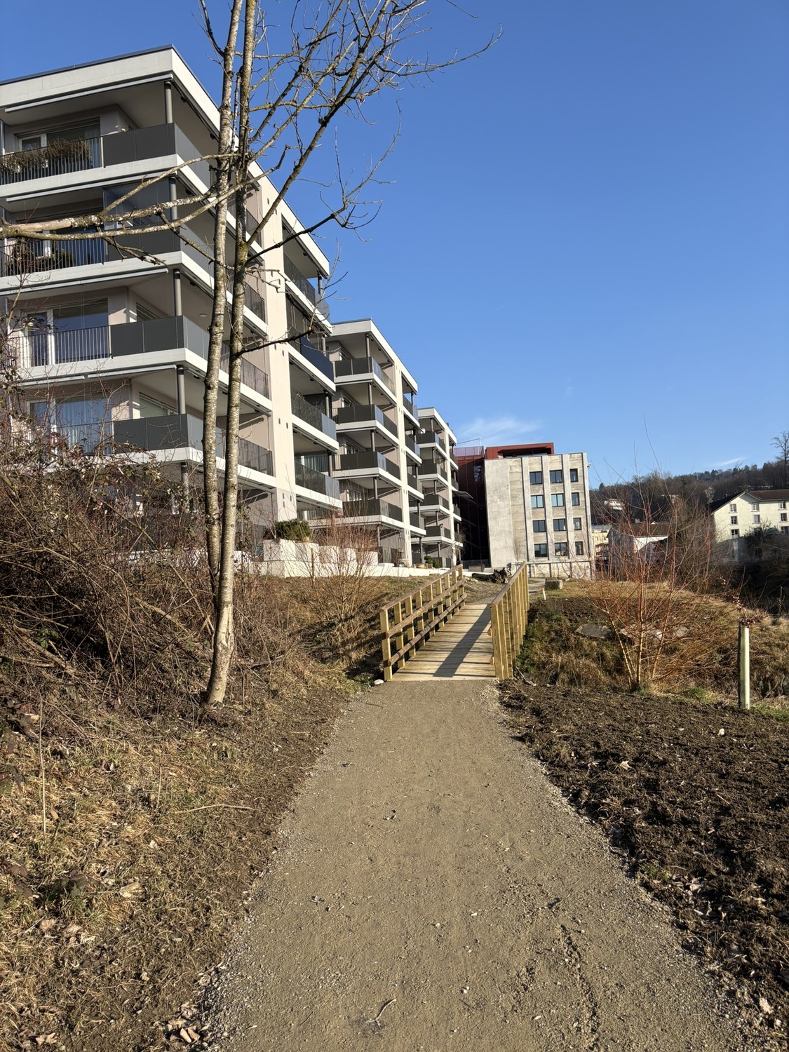 Die Bahnhöfe Bischofszell Stadt und Nord sind zu Fuss erreichbar, ein Aldi befindet sich wenige Gehminuten von der Überbauung entfernt. Ebenfalls hat es eine Bushaltestelle direkt bei der Überbauung.