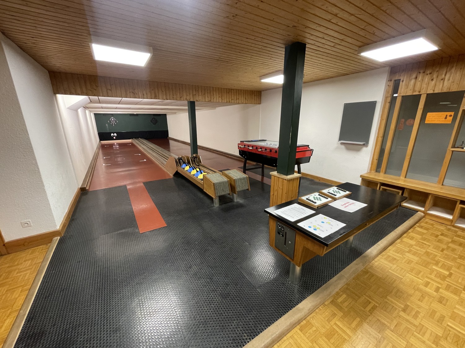 Die Anlage der STWEG "Uf'm Büel" bietet ein Hallenbad, eine Sauna und mehrere Nebenräume im Hauptgebäude der Stockwerkeigentümergemeinschaft. Alle Gebäude und Anlagen können über die Tiefgarage erreicht werden. Ein weiterer Raum im Untergeschoss des Hauptgebäudes mit diversen Spielmöglichkeiten bietet angenehme Unterhaltung bei schlechtem Wetter.