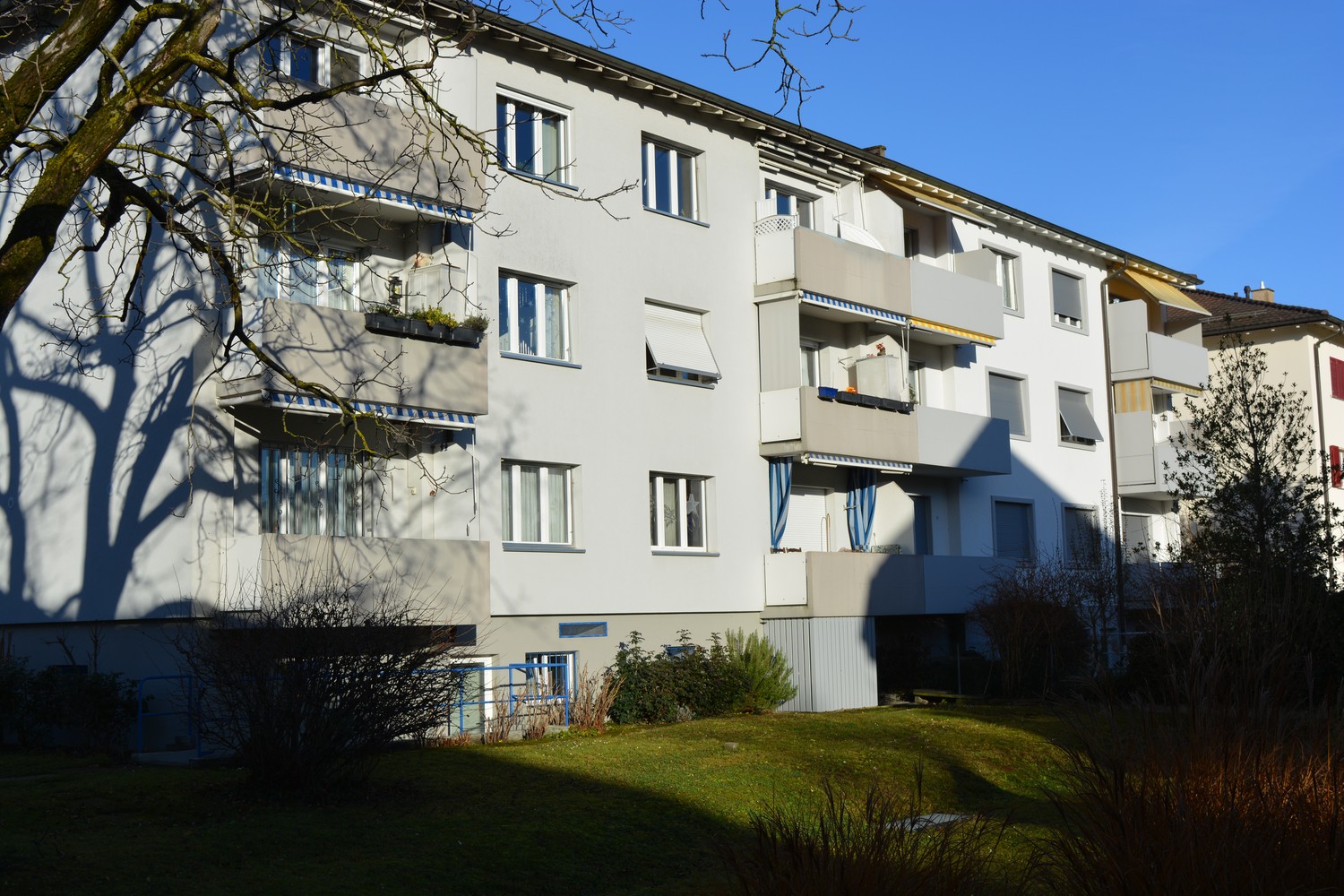 Die Wohnung ist in einem Mehrfamilienhaus mit 6 Wohnungen und befindet sich an ruhiger Lage nähe Hard Wald.
