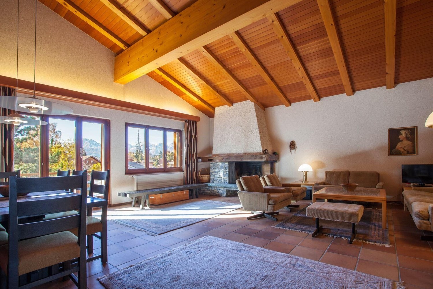 Sind Sie auf der Suche nach einem geeignetem Feriendomizil für die ganze Familie? Dann ist dieses im Jahre 1976 bis 1977 erbaute Anwesen genau das Richtige. Das Objekt liegt wunderbar eingebettet an privilegierter Hanglage, geniesst einen unverbaubaren Ausblick über das Dorf hinweg an die Walliser Berge und bietet mit der überdurchschnittlichen Grösse Platz für Jung und Alt. Beim Bau der gesamten Liegenschaft wurde auf handverlesene und qualitativ hochwertige Materialien geachtet, so dass sich die Substanz und der allgemeine Zustand dieses einmaligen Chalets als absolut einwandfrei und sehr gepflegt beschreiben lassen.