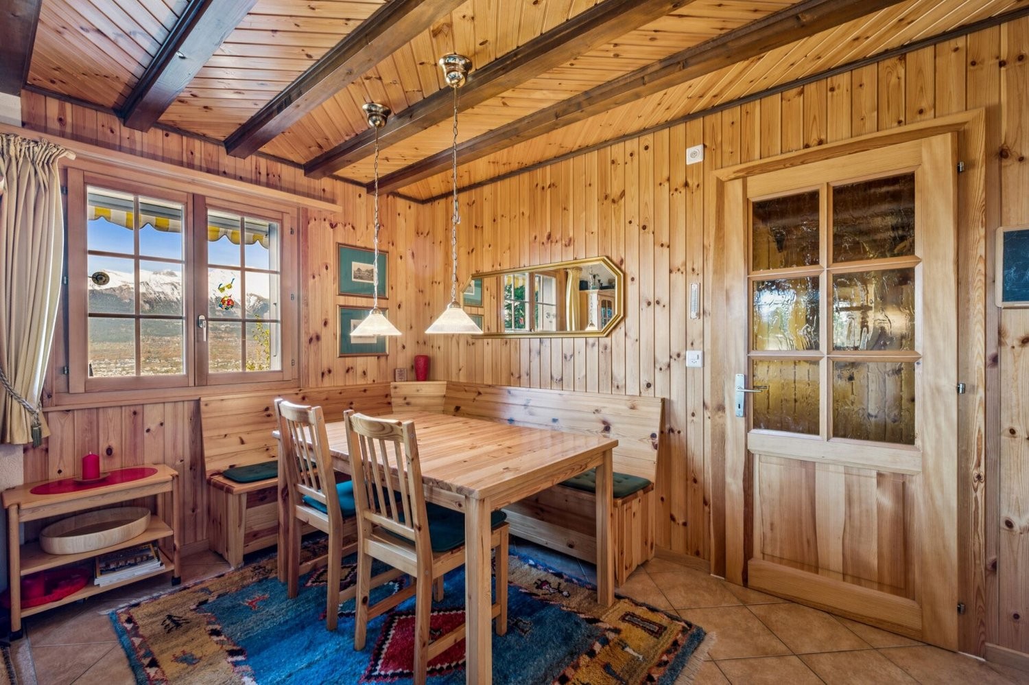 Das im Jahr 1992 erbaute Chalet überzeugt durch seine warme Ausstrahlung und eine liebevoll gestaltete Innenarchitektur. Auf rund 87 Quadratmetern Nettowohnfläche entfaltet sich ein behagliches Raumkonzept, geprägt von Holz, Struktur und Licht. Beim Eintreten empfängt Sie ein praktischer Eingangsbereich mit Platz für Schuhe und Jacken. Der gemütliche Wohn- und Essbereich mit Cheminée lädt zum Verweilen ein und vermittelt ein Gefühl von Geborgenheit. Grosse Fensterfronten eröffnen den Blick auf die umliegenden Gipfel, während sich die Terrasse als Ort des Innehaltens und Geniessens präsentiert.