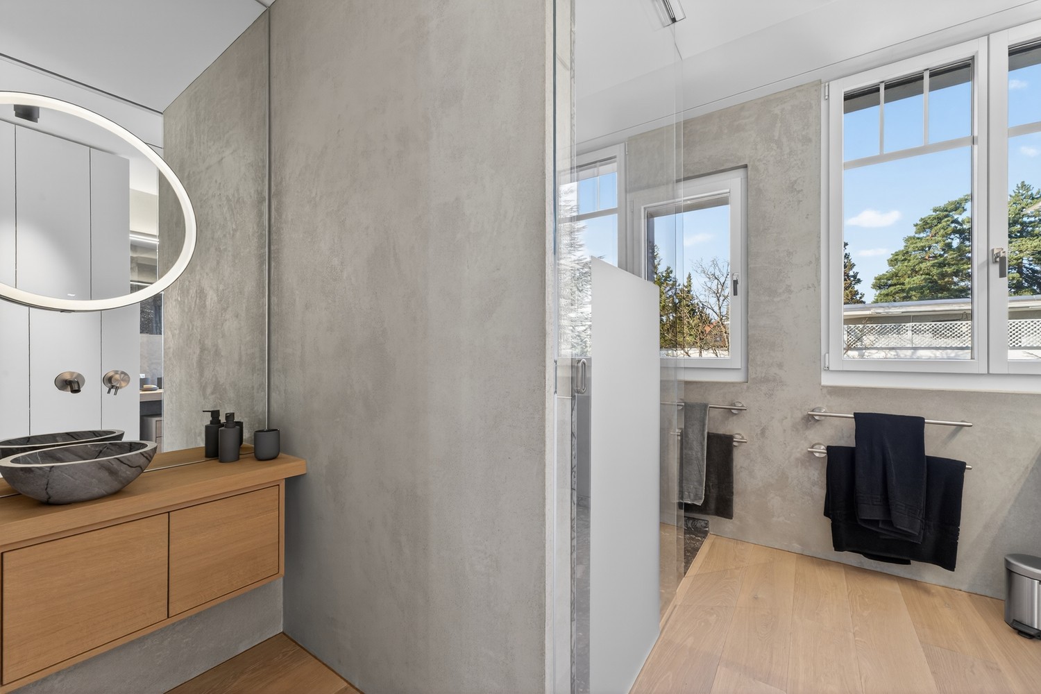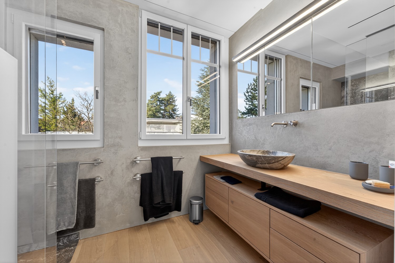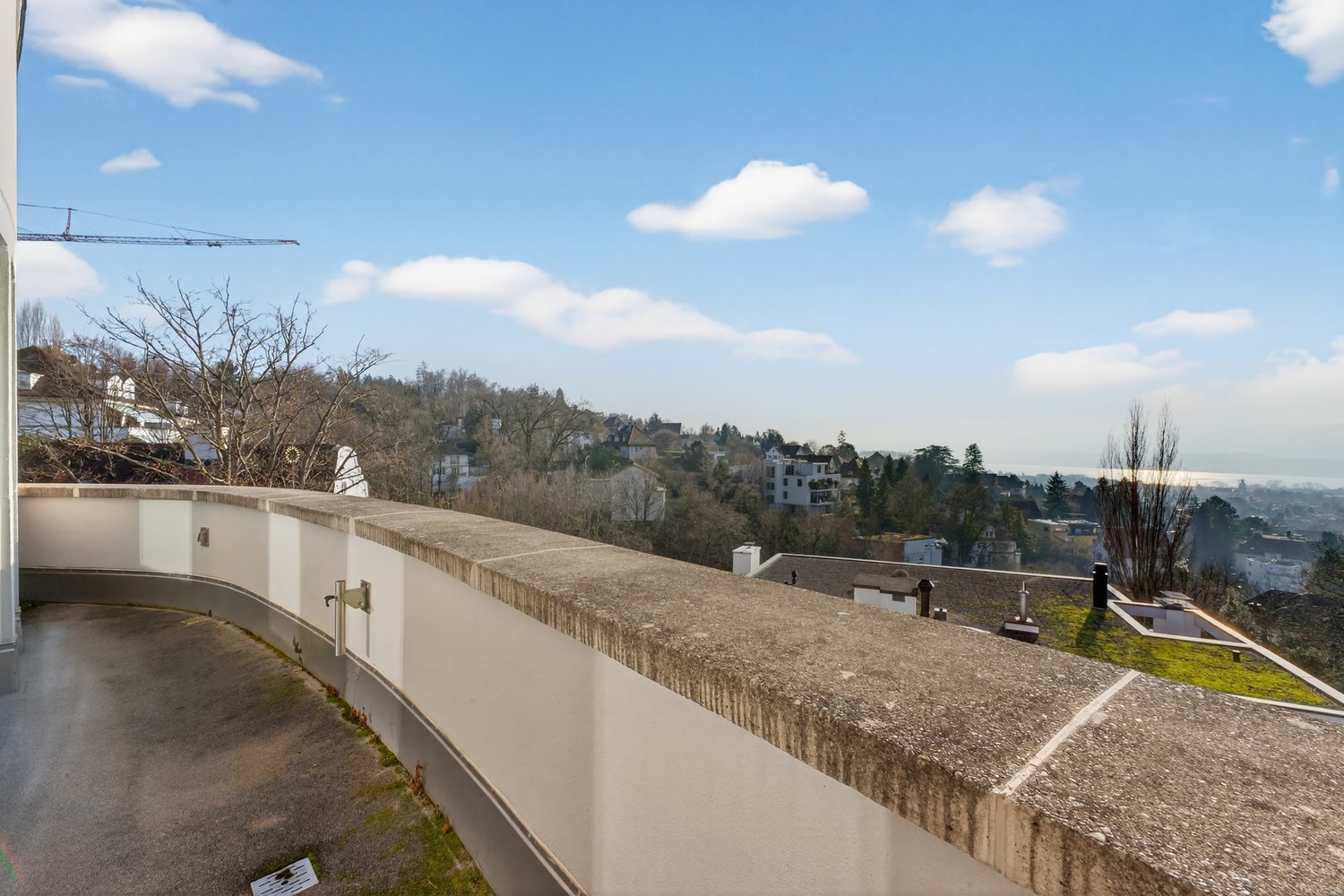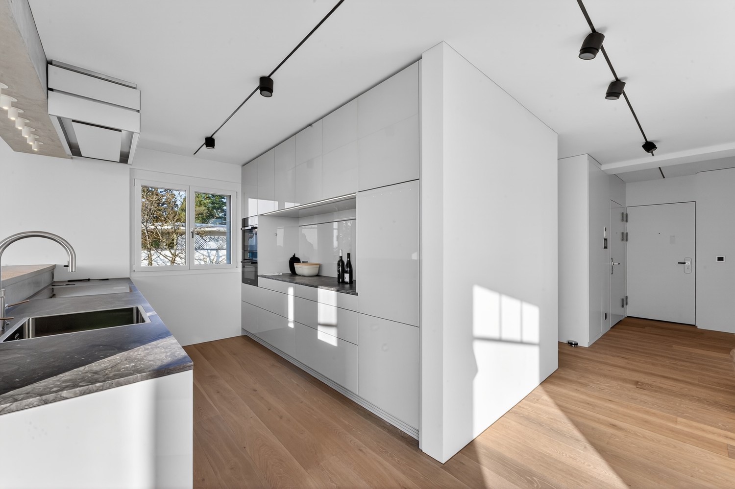 Die Wohnung liegt im 3. Obergeschoss und ist mit dem Lift direkt erreichbar. Sie bietet rund 125 m² Wohnfläche, einen durchdachten Grundriss sowie eine eindrückliche Aussicht über die Stadt Zürich bis zum Zürichsee. Die hochwertige Möblierung unterstreicht den repräsentativen Charakter der Wohnung und schafft ein ruhiges, elegantes Wohnambiente.