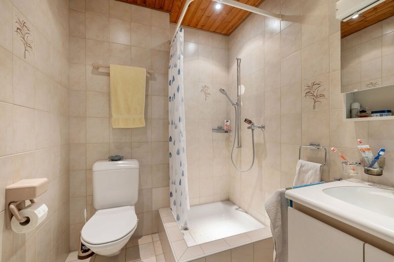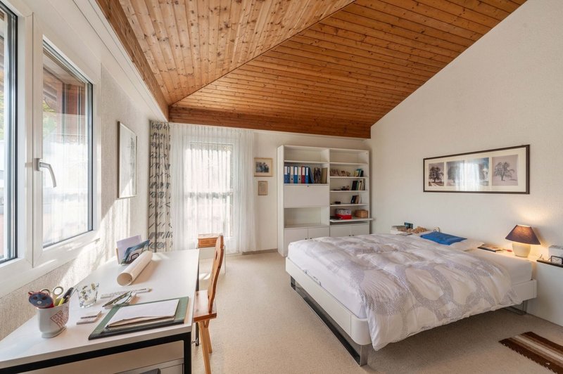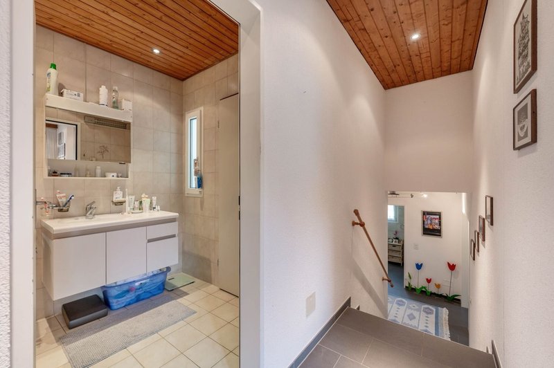 Eine Treppe führt zu zwei hellen Zimmern, die sich bestens als Schlaf-, Kinder- oder Arbeitszimmer eignen. Auf derselben Ebene befindet sich ein Badezimmer mit Badewanne, Toilette, Waschtisch und Spiegelschrank.
