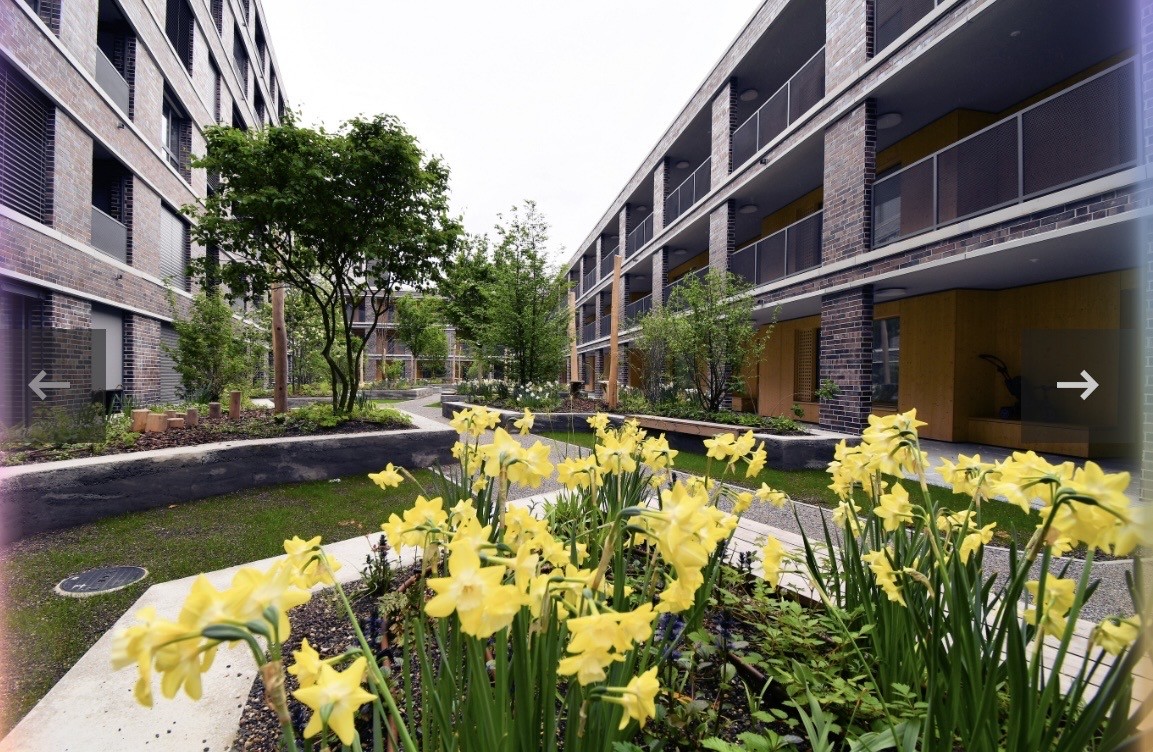 Schöne Neubau-Wohnung am Europaplatz mit eigenem Waschturm und ruhigem Balkon mit Aussicht in einen gepflegten grünen Innenhof!