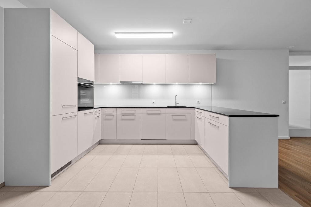 - Küche und Nasszellen mit pflegeleichtem, hellem Plattenboden
