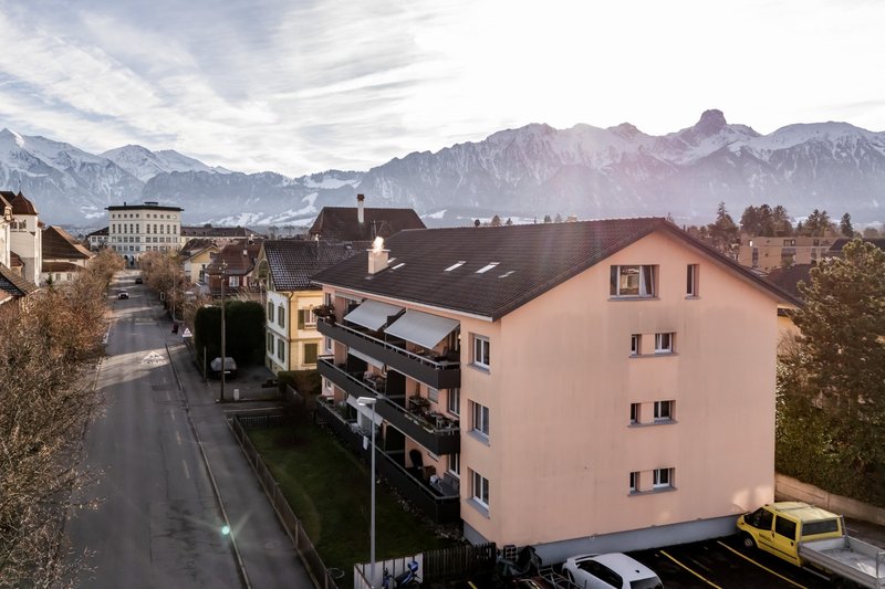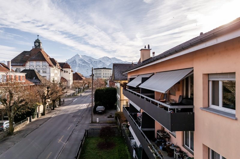 Die Wohnung befindet sich in direkter Angrenzung an die Stadt Thun und bietet eine ideale Kombination aus urbaner Erreichbarkeit und angenehmer Wohnruhe.
