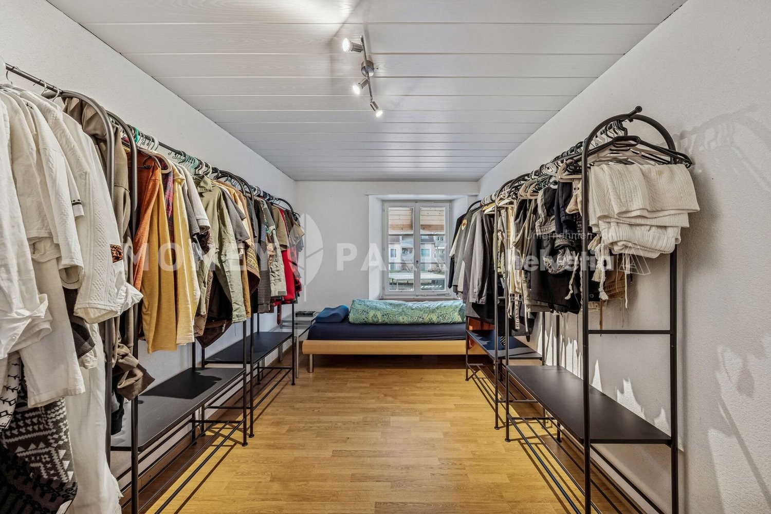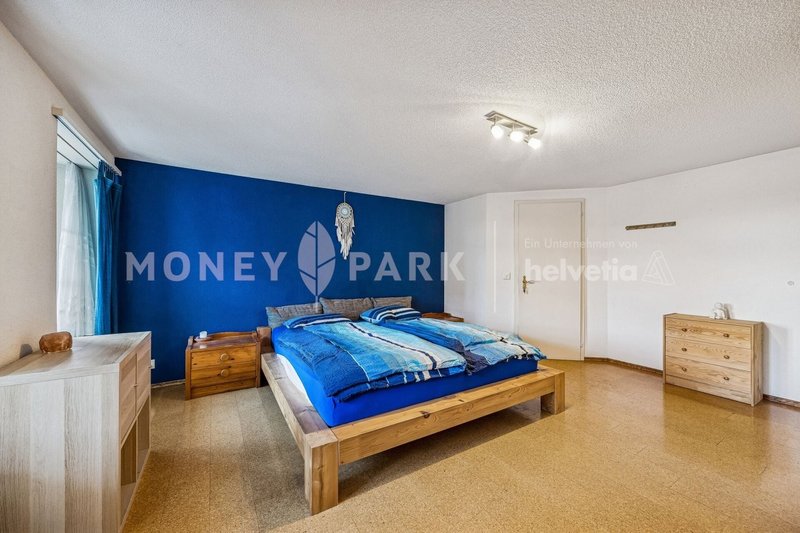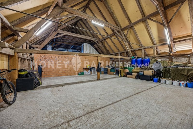 Das Obergeschoss umfasst drei Zimmer, einen Korridor sowie ein Badezimmer mit Dusche. Der darüberliegende Zwischenstock mit Dachboden verfügt über eine zusätzliche Arbeitsfläche und kann flexibel genutzt werden. Ein Keller sowie mehrere Aussenparkplätze ergänzen das Raumangebot.