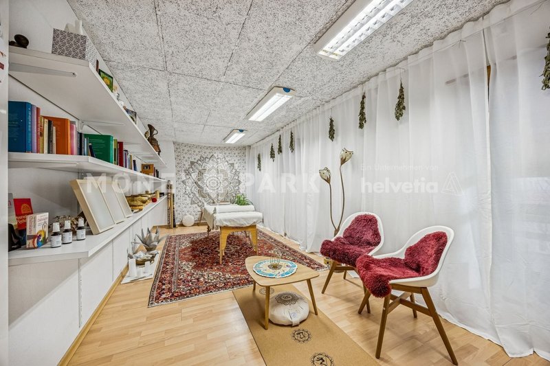 Im Erdgeschoss befinden sich der Eingangsbereich mit Gäste-WC und Waschturm, der Wohn- und Essbereich sowie die Küche. Von hier aus besteht ein direkter Zugang zur grosszügigen Terrasse und zur Gartenfläche. Der grosszügige Gewerberaum eröffnet vielfältige Nutzungsmöglichkeiten für unterschiedliche Geschäftszwecke und verfügt über ein separates Gäste-WC. Ergänzend steht ein beheiztes Zimmer zur Verfügung, das sich ideal für Praxis-, Therapie- oder Büronutzung eignet und weiteres Ausbaupotenzial bietet.