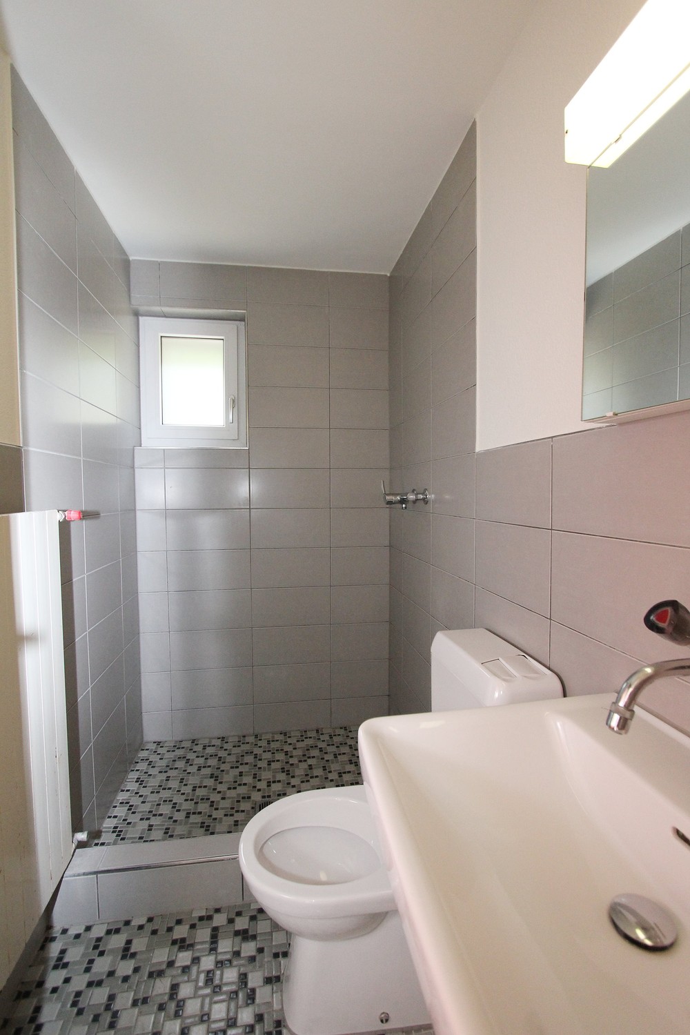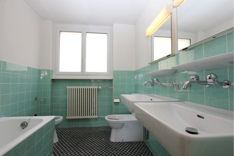 Über einen gedeckten Vorplatz gelangt man ins grosszügige Entrée mit einem praktischen Garderobenschrank. Weiter befinden sich im Erdgeschoss zwei Zimmer, eine Nasszelle (Dusche und WC), ein Wasch- und Trocknungsraum (ohne Waschmaschine und Tumbler), der Luftschutzraum, der Heizraum sowie die Doppel-Garage.