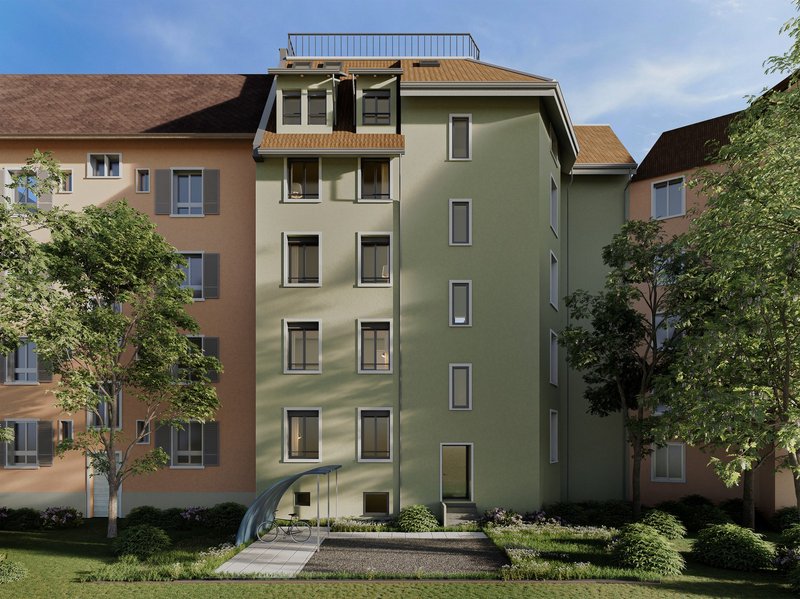 Das Mehrfamilienhaus umfasst zehn 2.5-Zimmerwohnungen auf vier Etagen sowie eine 1.5-Zimmer im Dachgeschoss.