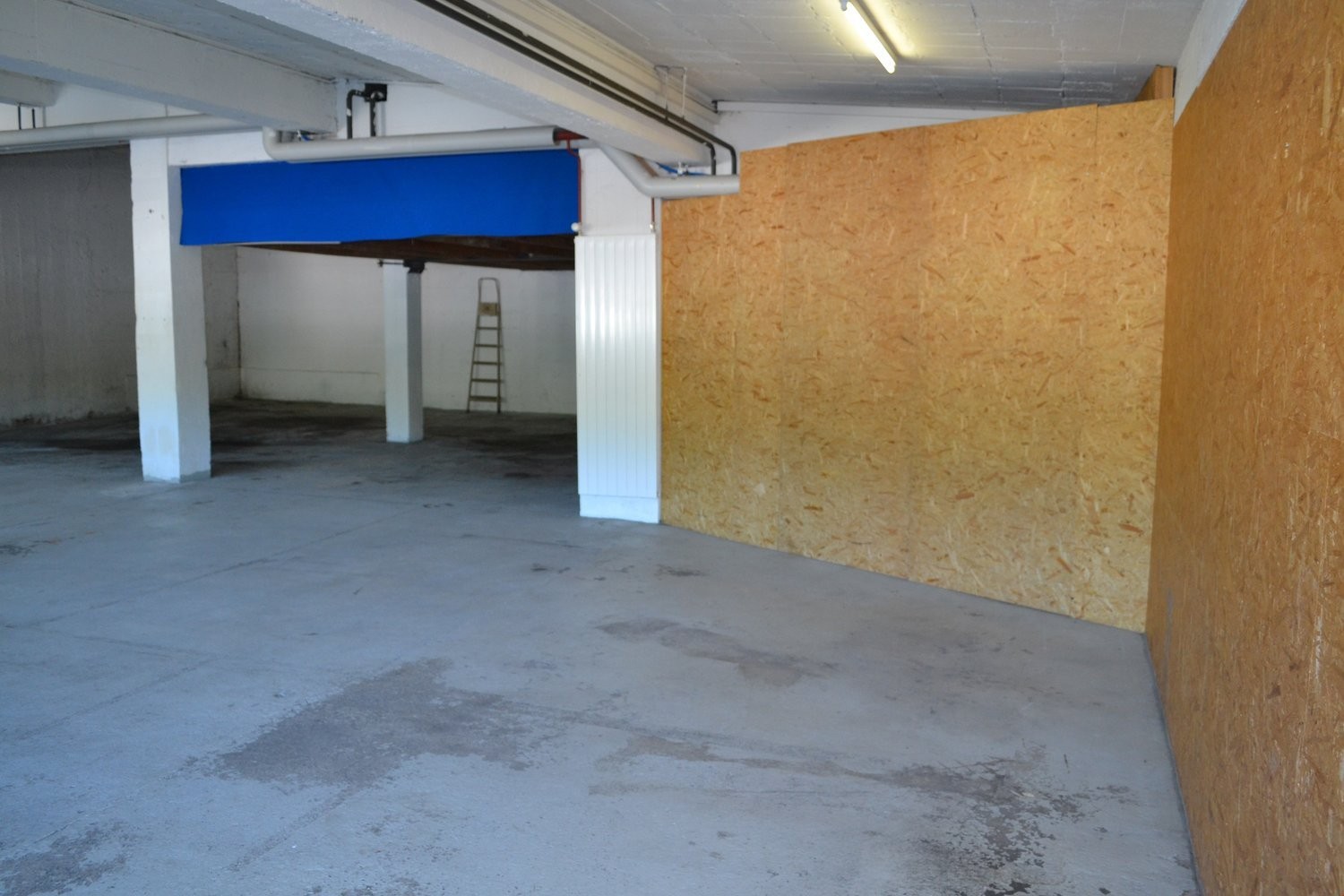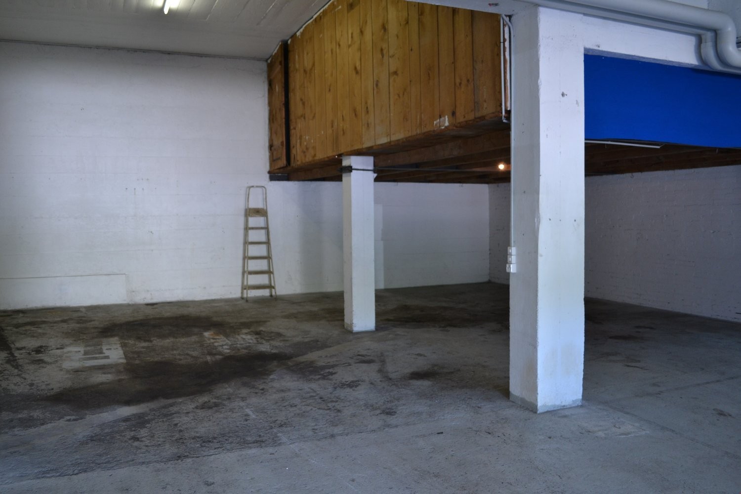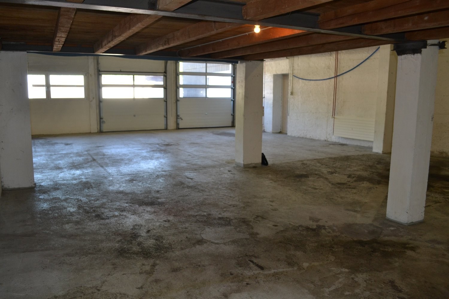 Grosse Arbeitsflächen: grosser Raum mit Betonböden und hohen Decken, ideal für verschiedene Arbeitsprozesse