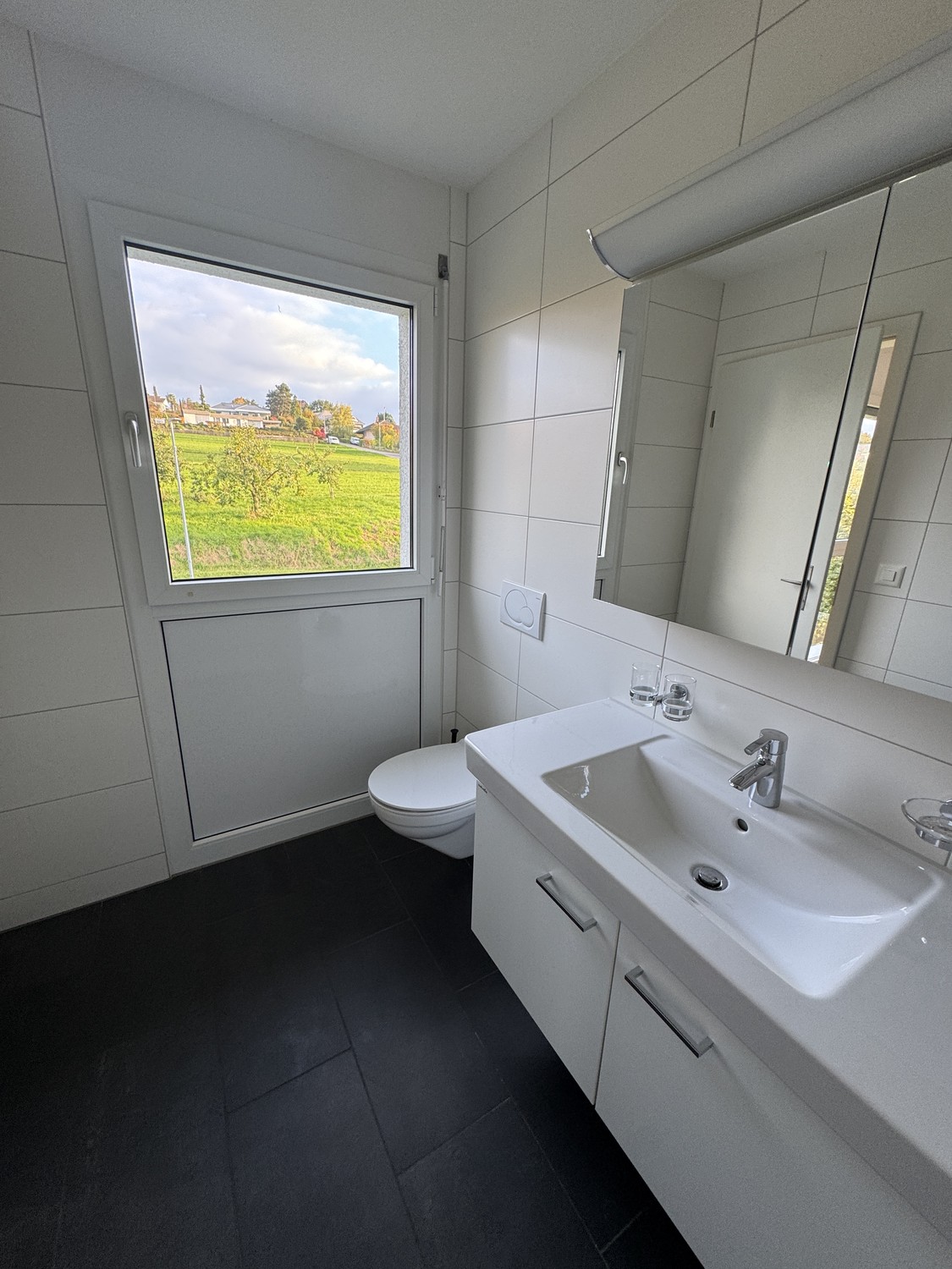 Von Privat zu verkaufen, an naturnaher und ruhig gelegener Lage in einem kleinen Mehrfamilienhaus mit vier Wohneinheiten, eine helle 4.5 Zimmerwohnung.
