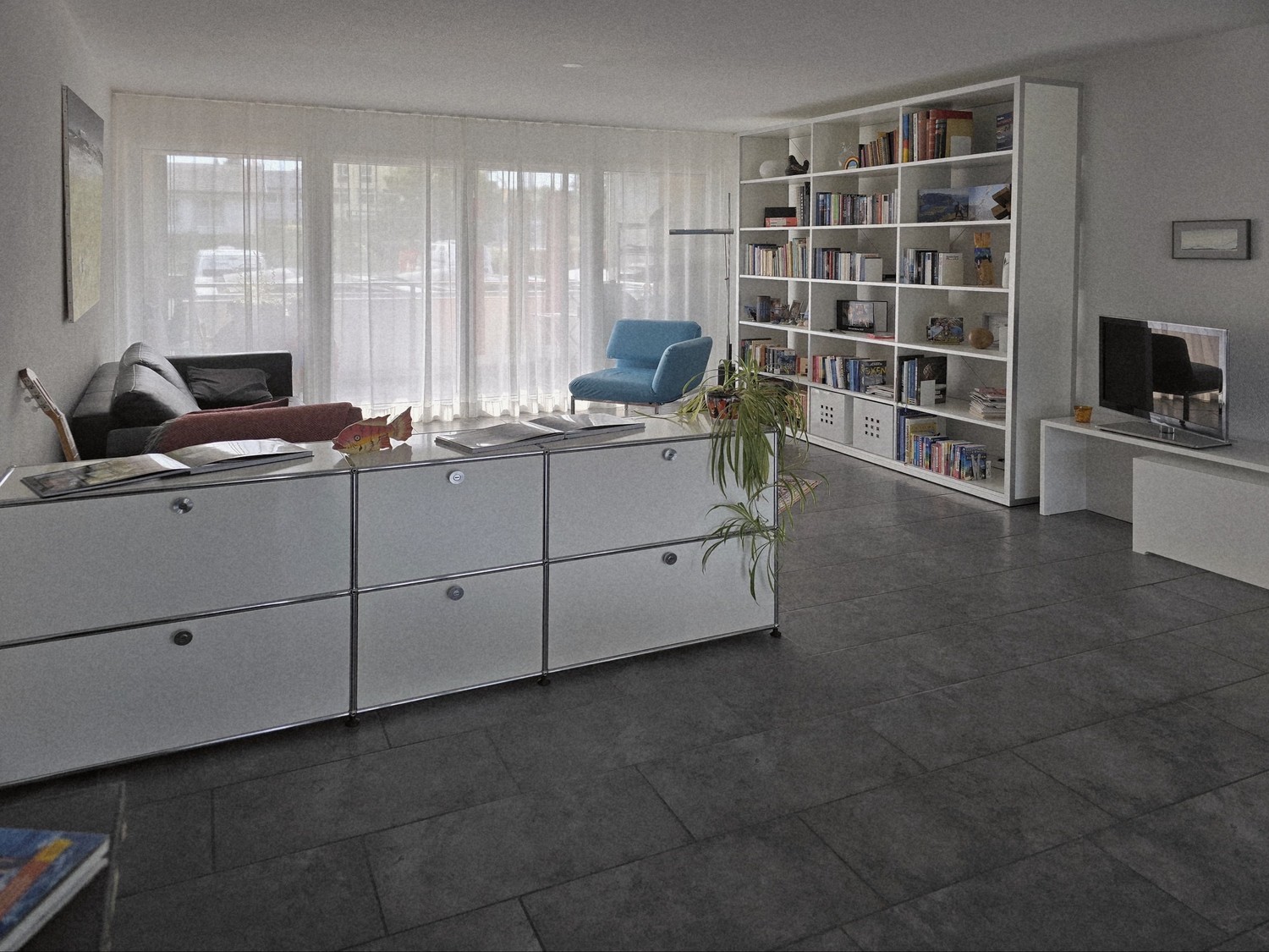 Grosszügiger Wohn- Essbereich mit 45 m2 mit TV und «Hyperboom-Musikbox»