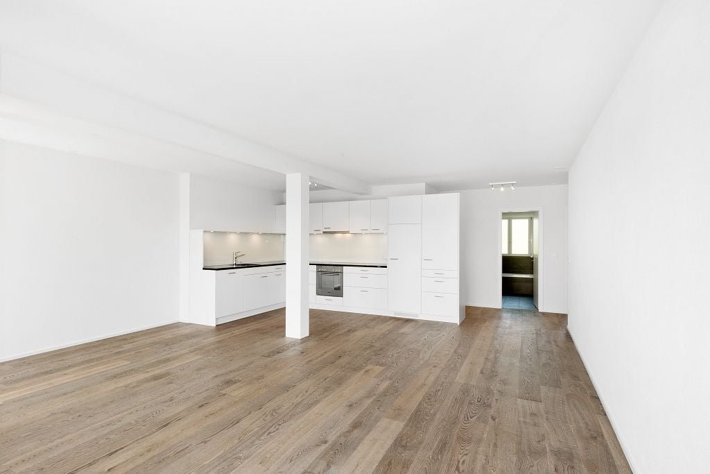 Die Wohnung verfügt über eine offene, moderne Küche mit zeitgemässem Komfort. Das Badezimmer ist mit einer Badewanne ausgestattet. Es sind Parkett- und Plattenböden verlegt. Ein grosszügiger Balkon sowie ein Keller gehören zur Wohnung.